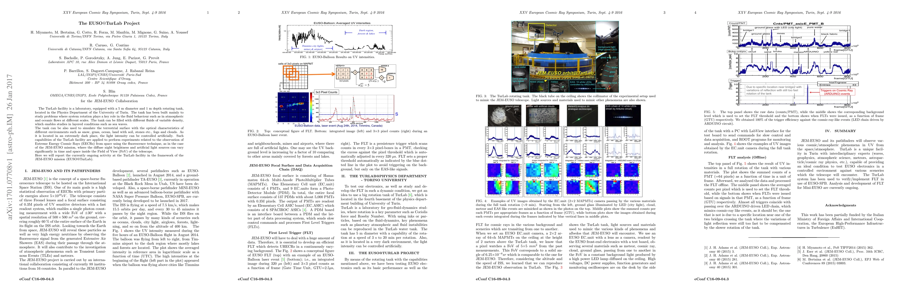 The TurLab facility in Turin is a rotating tank used to simulate various fluid behaviors and environmental conditions, aiding in experiments for observing Extreme Energy Cosmic Rays using fluorescence techniques. The EUSO@TurLab project focuses on ongoing activities related to the JEM-EUSO mission.