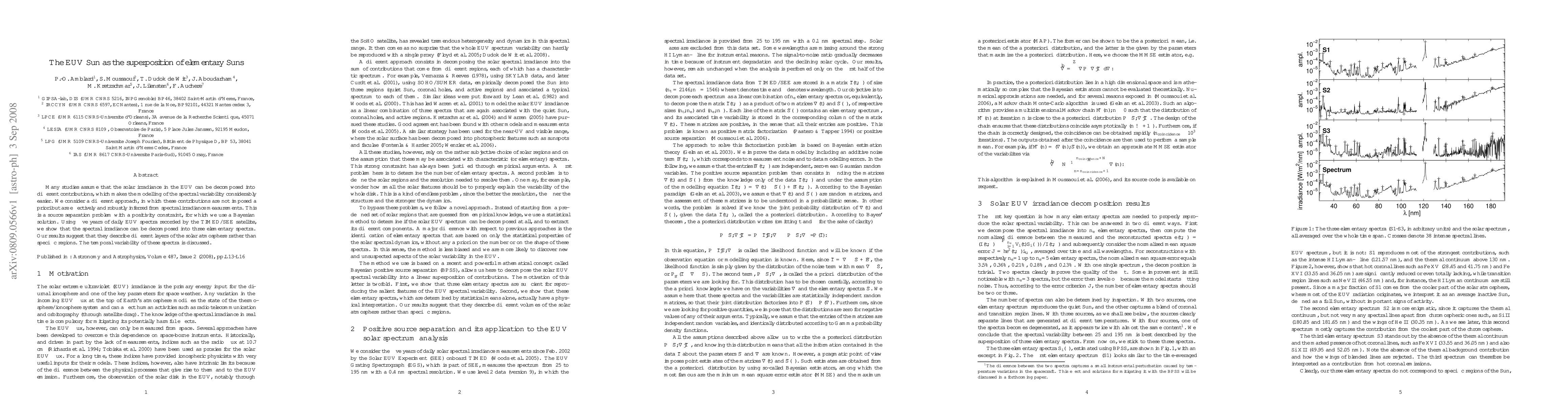 Many studies assume that the solar irradiance in the EUV can be decomposed into different contributions, which makes the modelling of the spectral variability considerably easier. We consider a different approach, in which these contributions are not imposed a priori but are effectively and robustly inferred from spectral irradiance measurements. This is a source separation problem with a positivity constraint, for which we use a Bayesian solution. Using five years of daily EUV spectra recorded by the TIMED/SEE satellite, we show that the spectral irradiance can be decomposed into three elementary spectra. Our results suggest that they describe different layers of the solar atmosphere rather than specific regions. The temporal variability of these spectra is discussed.