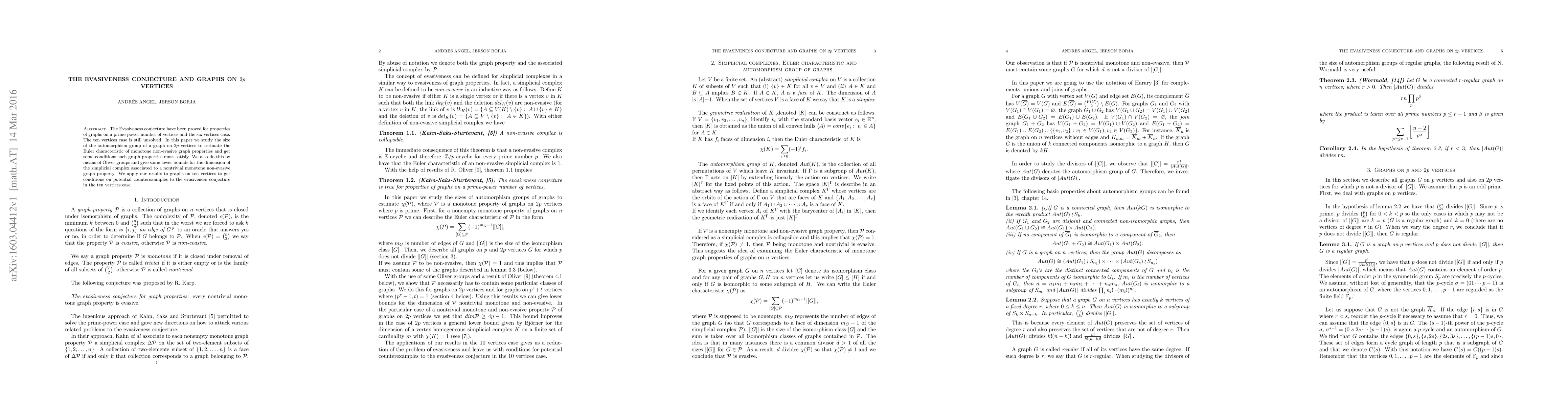 This paper proves the Evasiveness conjecture for graphs on prime-power vertices and explores the size of automorphism groups for $2p$ vertex graphs to estimate Euler characteristics of monotone non-evasive properties. It also provides conditions for such properties and lower bounds for the dimension of associated simplicial complexes.