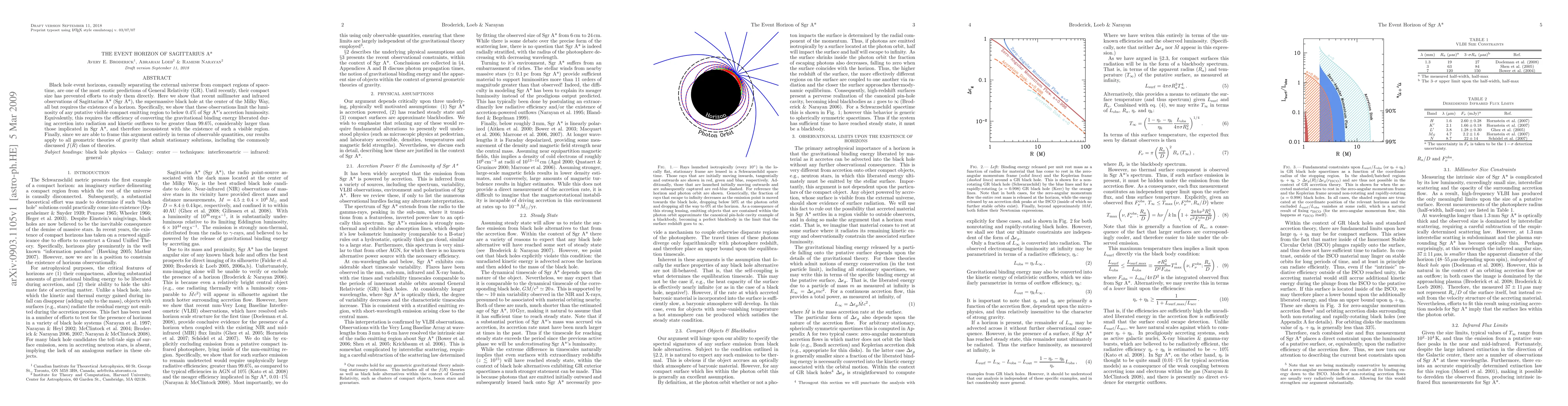 This research concludes that observations of Sagittarius A* (Sgr A*), the Milky Way's supermassive black hole, nearly confirm the existence of an event horizon. By analyzing millimeter and infrared data, the study finds that any visible, compact emitting region around Sgr A* would need to produce radiation at less than 0.4% of its accretion luminosity. This level of efficiency is deemed unlikely, supporting the presence of a horizon. The findings apply broadly to various gravity theories, not just General Relativity.