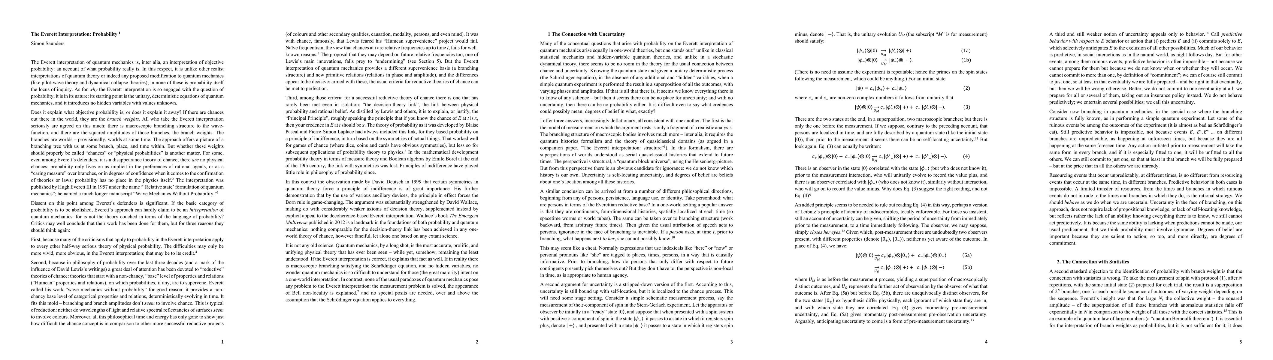 The Everett interpretation of quantum mechanics interprets branching quantum states as chance processes, with branch amplitudes squared representing probabilities, illustrating that physical probability emerges from the branching structure.