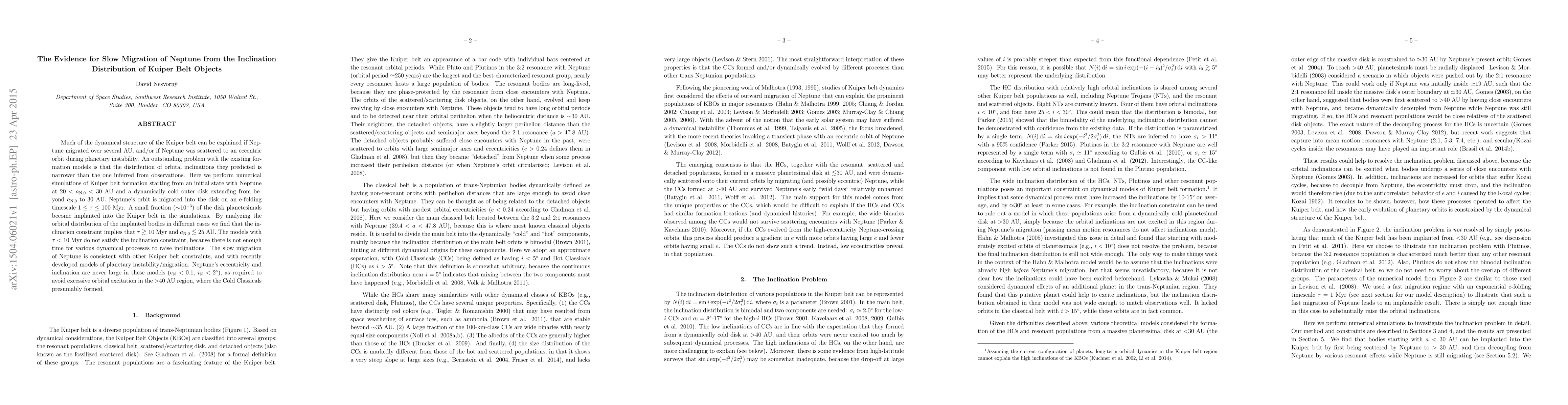 This paper argues that slow migration of Neptune (with a timescale of at least 10 Myr) is necessary to explain the observed distribution of Kuiper Belt object inclinations. Numerical simulations show that faster migration does not adequately account for the observed inclinations, supporting models where Neptune's migration occurs over a longer period.