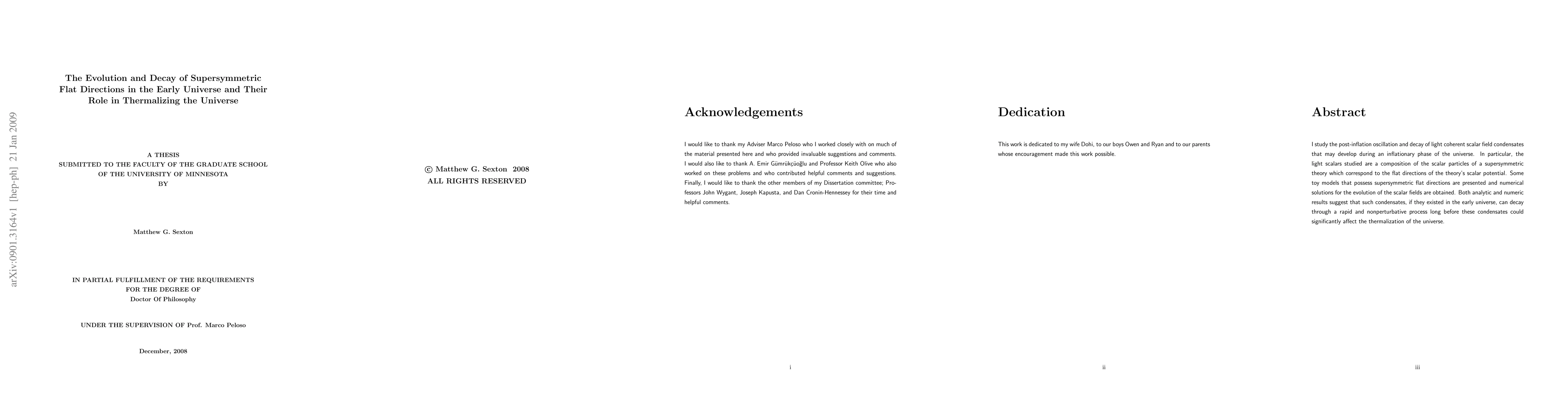 I study the post-inflation oscillation and decay of light coherent scalar field condensates that may develop during an inflationary phase of the universe. In particular, the light scalars studied are a composition of the scalar particles of a supersymmetric theory which correspond to the flat directions of the theory's scalar potential. Some toy models that possess supersymmetric flat directions are presented and numerical solutions for the evolution of the scalar fields are obtained. Both analytic and numeric results suggest that such condensates, if they existed in the early universe, can decay through a rapid and nonperturbative process long before these condensates could significantly affect the thermalization of the universe.