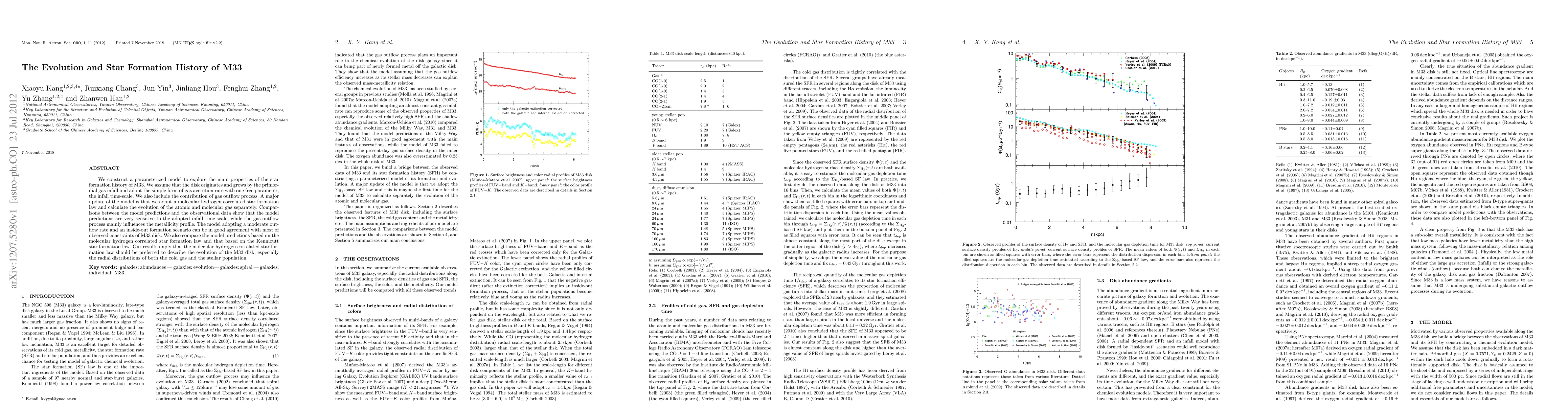 This work improves upon previous models by adopting a molecular hydrogen correlated SFR law and exploring the impact of gas outflow on M33's evolution, providing a more comprehensive understanding of the disk's formation and evolution.