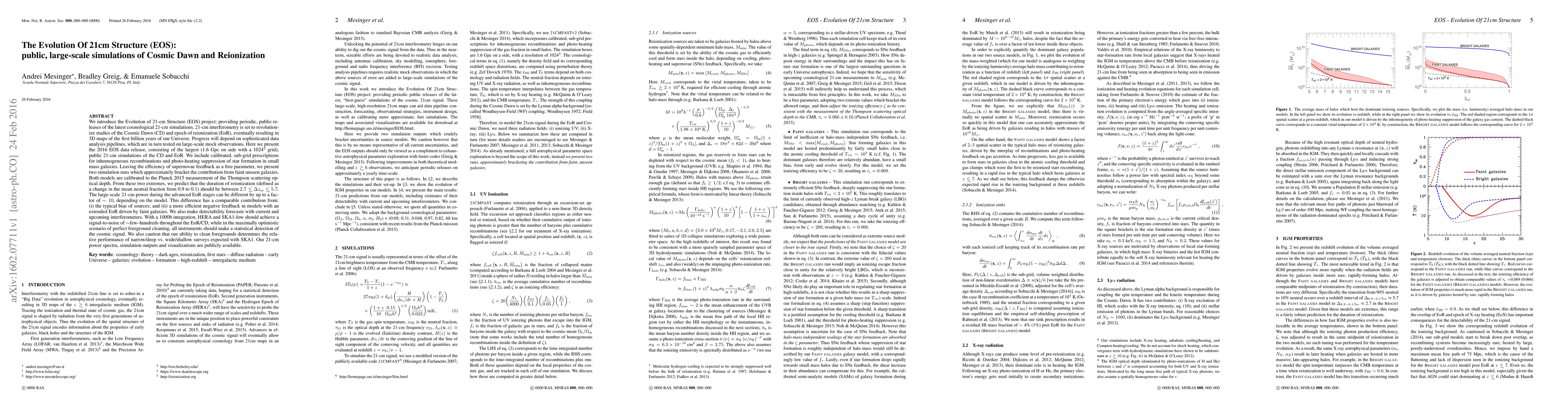 The Evolution of 21-cm Structure project provides large-scale simulations of Cosmic Dawn and reionization, predicting a 2.7-5.7 billion-year duration for the epoch of reionization and signal-to-noise ratios achievable by future telescopes like HERA and SKA1-low.