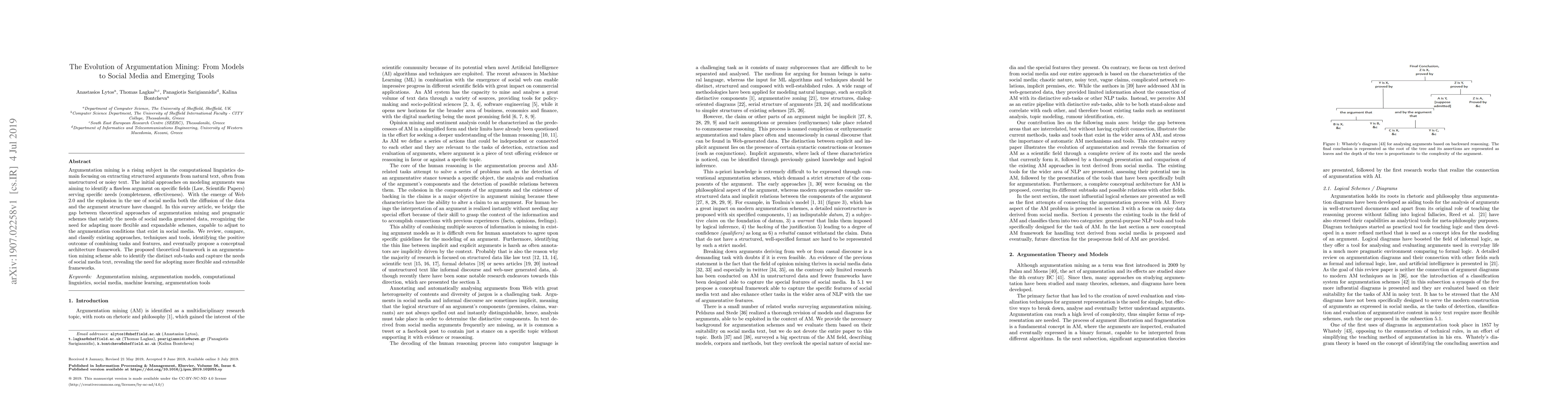 Argumentation mining is a rising subject in the computational linguistics domain focusing on extracting structured arguments from natural text, often from unstructured or noisy text. The initial approaches on modeling arguments was aiming to identify a flawless argument on specific fields (Law, Scientific Papers) serving specific needs (completeness, effectiveness). With the emerge of Web 2.0 and the explosion in the use of social media both the diffusion of the data and the argument structure have changed. In this survey article, we bridge the gap between theoretical approaches of argumentation mining and pragmatic schemes that satisfy the needs of social media generated data, recognizing the need for adapting more flexible and expandable schemes, capable to adjust to the argumentation conditions that exist in social media. We review, compare, and classify existing approaches, techniques and tools, identifying the positive outcome of combining tasks and features, and eventually propose a conceptual architecture framework. The proposed theoretical framework is an argumentation mining scheme able to identify the distinct sub-tasks and capture the needs of social media text, revealing the need for adopting more flexible and extensible frameworks.