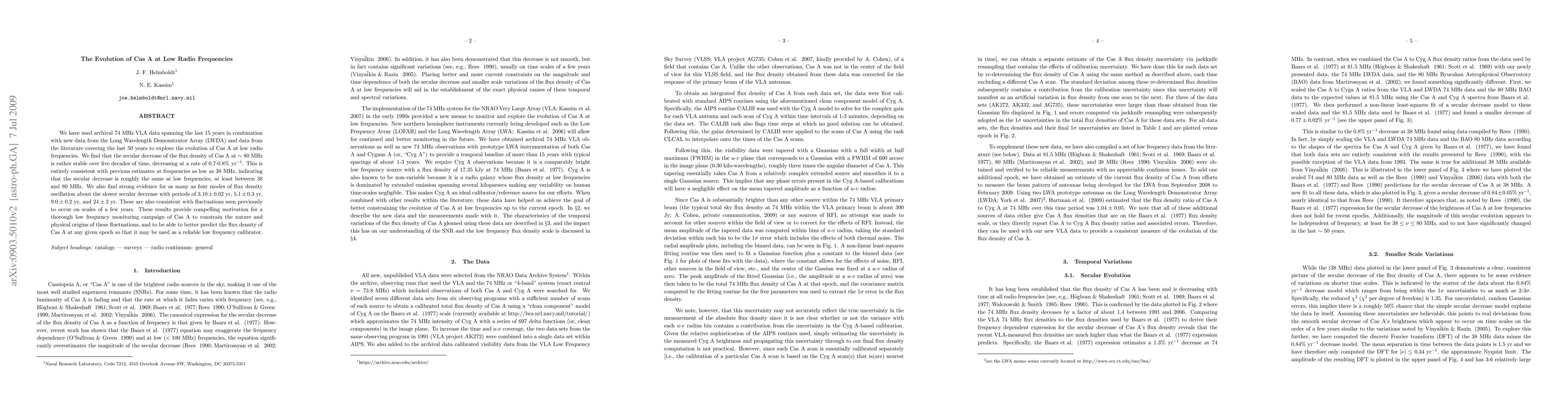 Researchers analyzed radio frequency data from Cas A over 15 years to find a stable decrease in flux density at low frequencies, with oscillations occurring at different time scales, motivating further monitoring to understand its nature and predictability.