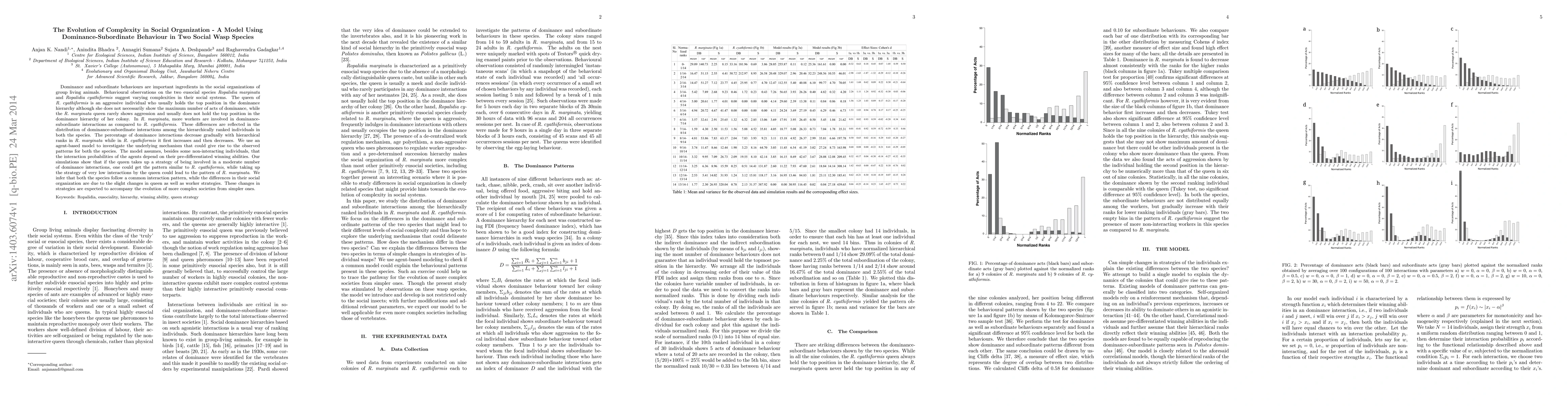 This paper examines the complexity in social organization of two eusocial wasp species, \textit{Ropalidia marginata} and \textit{R. cyathiformis}, through dominance-subordinate behaviours. An agent-based model reveals that differing queen interaction strategies—moderate for \textit{R. cyathiformis} and low for \textit{R. marginata}—explain the observed social hierarchies and interaction patterns.