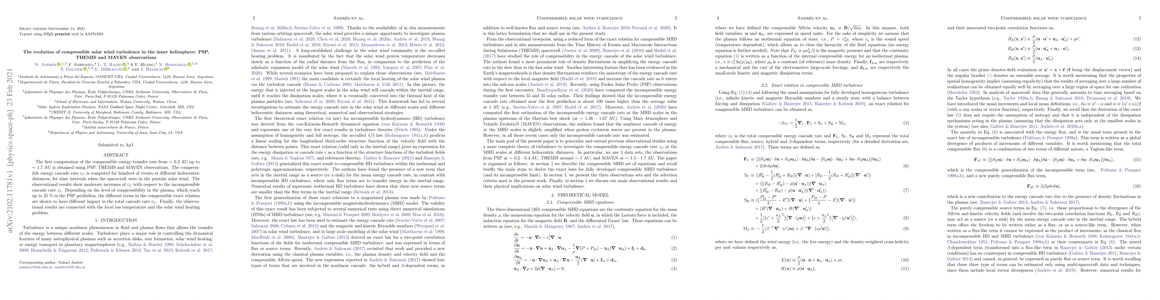 Researchers used data from PSP, THEMIS, and MAVEN spacecraft to calculate energy transfer rates in solar wind turbulence, finding moderate increases in compressible energy cascade rate with distance and level of plasma compressibility.