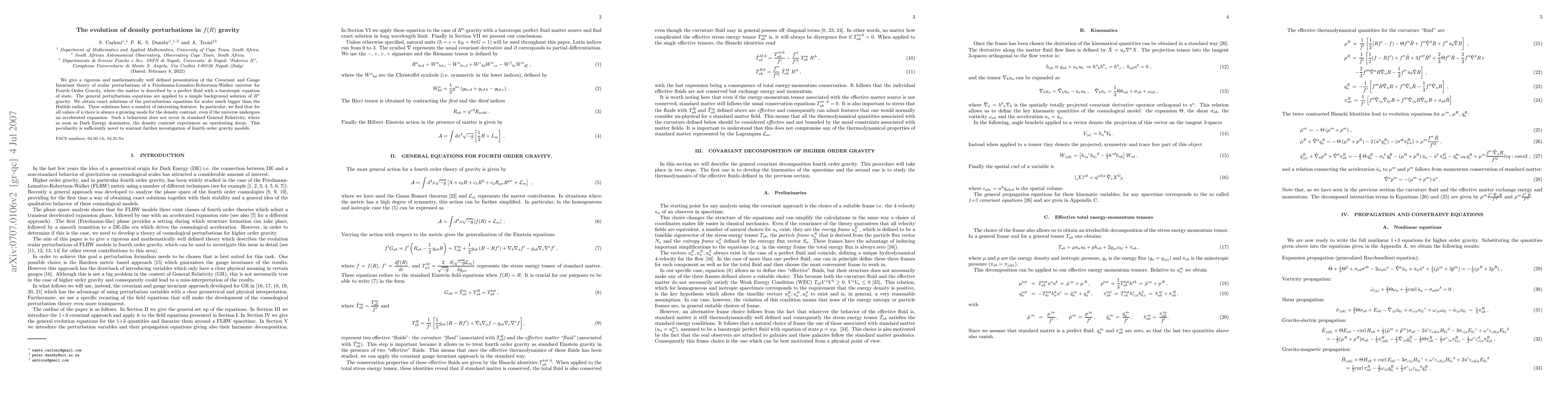 We give a rigorous and mathematically well defined presentation of the Covariant and Gauge Invariant theory of scalar perturbations of a Friedmann-Lemaitre-Robertson-Walker universe for Fourth Order Gravity, where the matter is described by a perfect fluid with a barotropic equation of state. The general perturbations equations are applied to a simple background solution of R^n gravity. We obtain exact solutions of the perturbations equations for scales much bigger than the Hubble radius. These solutions have a number of interesting features. In particular, we find that for all values of n there is always a growing mode for the density contrast, even if the universe undergoes an accelerated expansion. Such a behaviour does not occur in standard General Relativity, where as soon as Dark Energy dominates, the density contrast experiences an unrelenting decay. This peculiarity is sufficiently novel to warrant further investigation on fourth order gravity models.