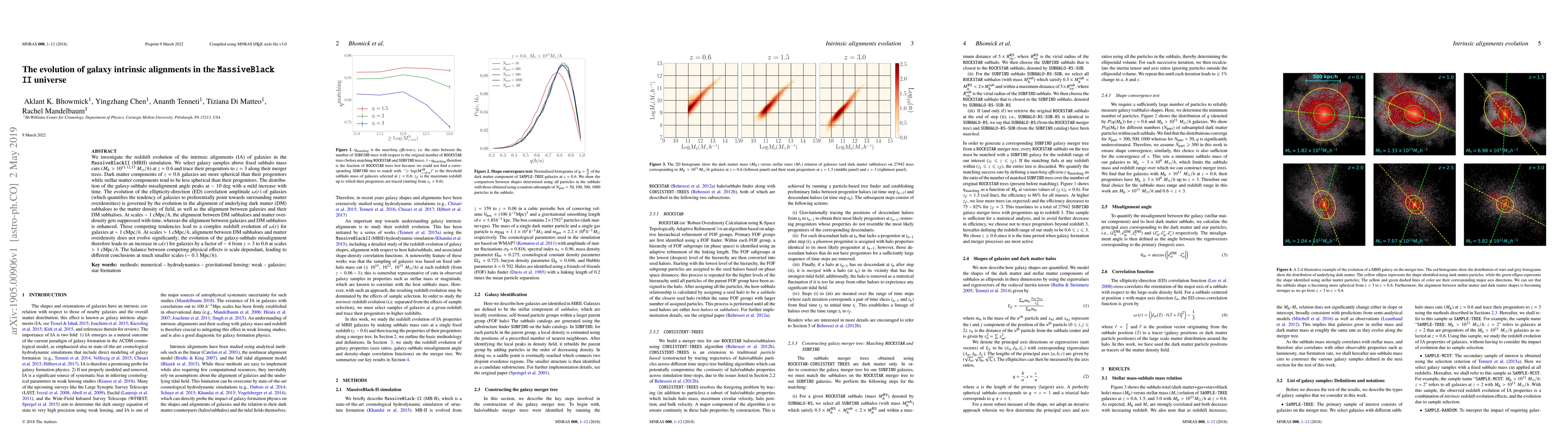 The study presents a detailed analysis of galaxy intrinsic alignments using merger trees from the MassiveBlack II simulation, providing insights into the redshift evolution of galaxy shapes, misalignment angles, and ED correlation functions.