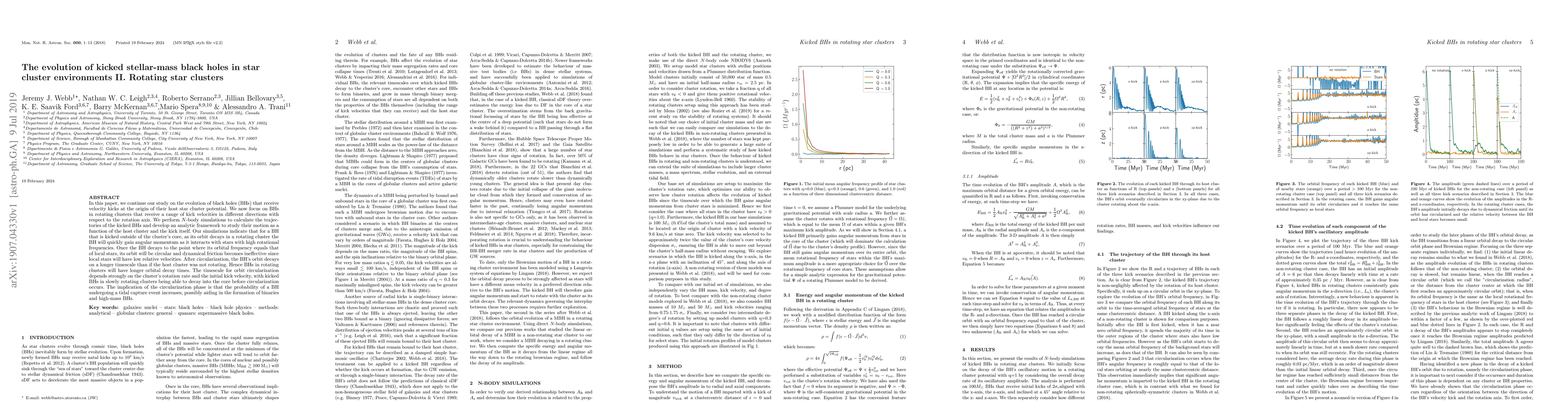 In this paper, we continue our study on the evolution of black holes (BHs) that receive velocity kicks at the origin of their host star cluster potential. We now focus on BHs in rotating clusters that receive a range of kick velocities in different directions with respect to the rotation axis. We perform N-body simulations to calculate the trajectories of the kicked BHs and develop an analytic framework to study their motion as a function of the host cluster and the kick itself. Our simulations indicate that for a BH that is kicked outside of the cluster's core, as its orbit decays in a rotating cluster the BH will quickly gain angular momentum as it interacts with stars with high rotational frequencies. Once the BH decays to the point where its orbital frequency equals that of local stars, its orbit will be circular and dynamical friction becomes ineffective since local stars will have low relative velocities. After circularization, the BH's orbit decays on a longer timescale than if the host cluster was not rotating. Hence BHs in rotating clusters will have longer orbital decay times. The timescale for orbit circularization depends strongly on the cluster's rotation rate and the initial kick velocity, with kicked BHs in slowly rotating clusters being able to decay into the core before circularization occurs. The implication of the circularization phase is that the probability of a BH undergoing a tidal capture event increases, possibly aiding in the formation of binaries and high-mass BHs.