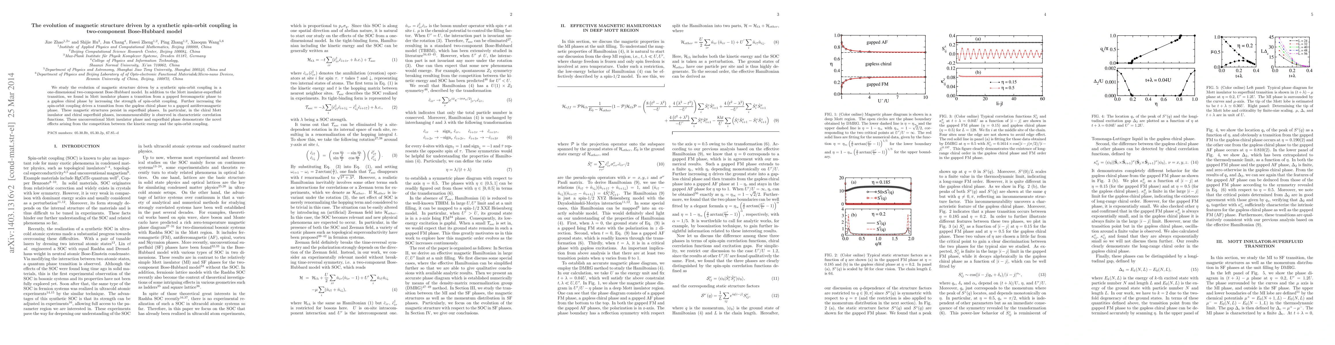 This paper investigates the magnetic structure evolution in a one-dimensional two-component Bose-Hubbard model under synthetic spin-orbit coupling, revealing transitions from ferromagnetic to chiral and then to antiferromagnetic phases in the Mott insulator regime, with similar structures persisting in superfluid phases. The study highlights novel effects from the interplay between kinetic energy and spin-orbit coupling.
