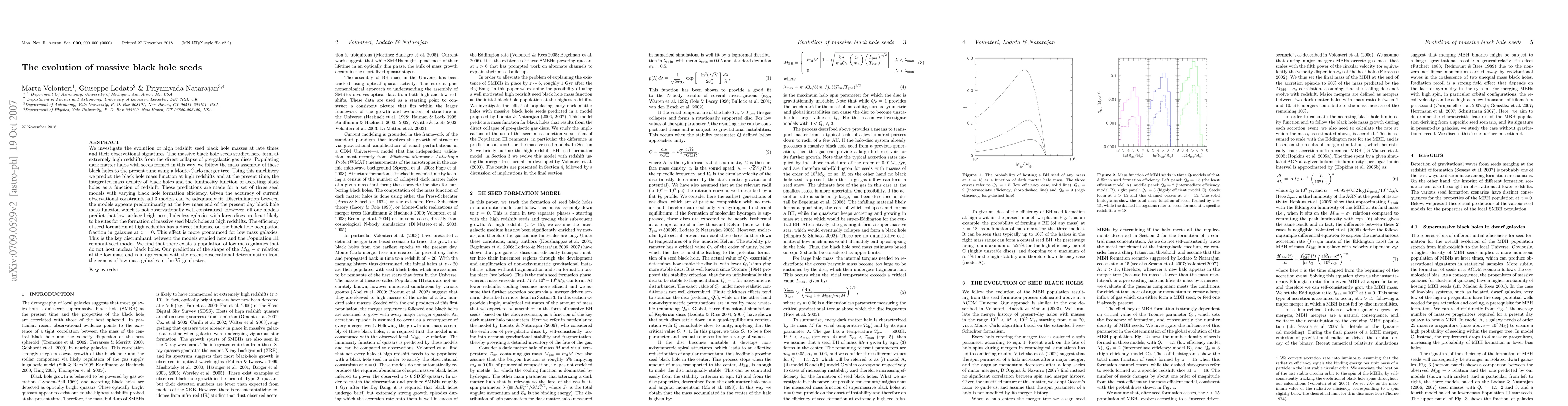 This paper explores the evolution of massive black hole seeds formed at high redshifts through direct collapse of pre-galactic gas discs, predicting their mass function, integrated mass density, and luminosity function. The study finds that low surface brightness, bulgeless galaxies with large discs are unlikely sites for such seed formation, and the efficiency of seed formation impacts the black hole occupation fraction in galaxies, especially in low mass galaxies.
