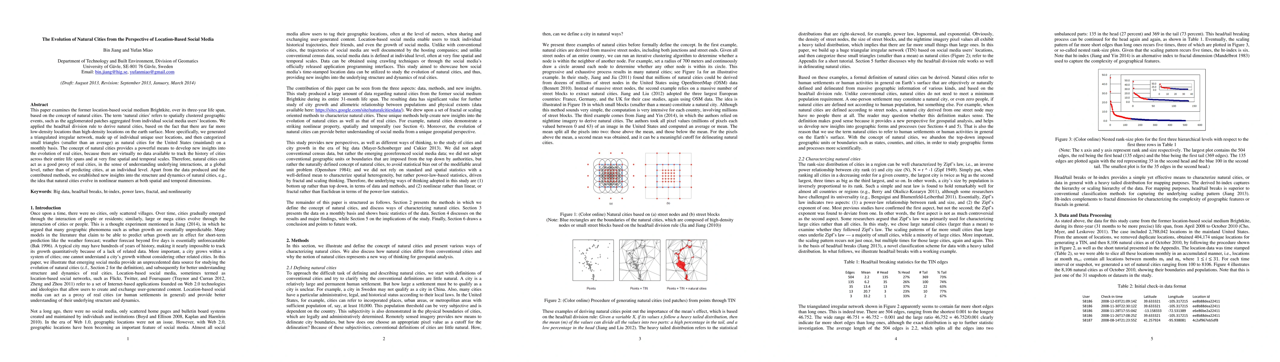 This paper examines the former location-based social medium Brightkite, over its three-year life span, based on the concept of natural cities. The term 'natural cities' refers to spatially clustered geographic events, such as the agglomerated patches aggregated from individual social media users' locations. We applied the head/tail division rule to derive natural cities, based on the fact that there are far more low-density locations than high-density locations on the earth surface. More specifically, we generated a triangulated irregular network, made up of individual unique user locations, and then categorized small triangles (smaller than an average) as natural cities for the United States (mainland) on a monthly basis. The concept of natural cities provides a powerful means to develop new insights into the evolution of real cities, because there are virtually no data available to track the history of cities across their entire life spans and at very fine spatial and temporal scales. Therefore, natural cities can act as a good proxy of real cities, in the sense of understanding underlying interactions, at a global level, rather than of predicting cities, at an individual level. Apart from the data produced and the contributed methods, we established new insights into the structure and dynamics of natural cities, e.g., the idea that natural cities evolve in nonlinear manners at both spatial and temporal dimensions. Keywords: Big data, head/tail breaks, ht-index, power laws, fractal, and nonlinearity