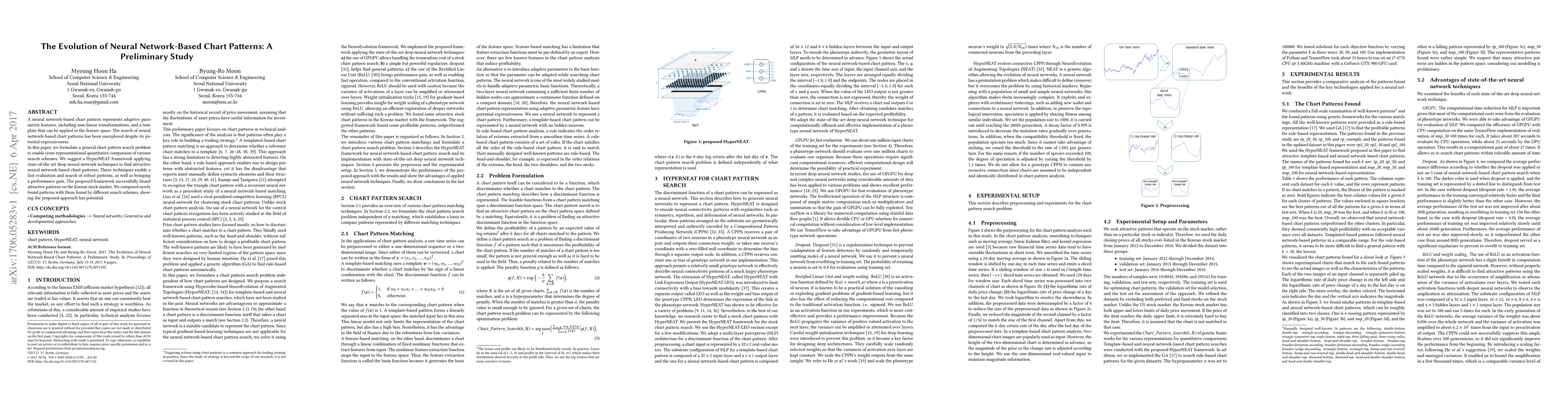 This paper introduces a HyperNEAT framework for discovering neural network-based chart patterns, which leverages advanced deep learning techniques to identify robust patterns in the Korean stock market. The study demonstrates the effectiveness of the proposed method through comparative analysis with other search schemes.