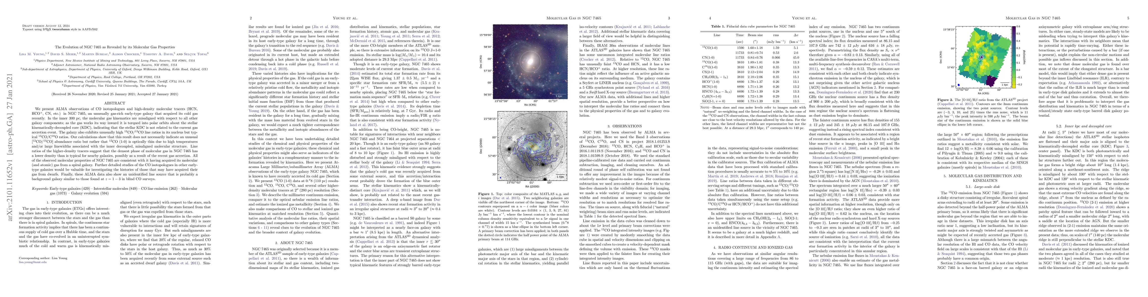We present ALMA observations of CO isotopologues and high-density molecular tracers (HCN, HCO+, CN, etc.) in NGC 7465, an unusually gas-rich early-type galaxy that acquired its cold gas recently. In the inner 300 pc, the molecular gas kinematics are misaligned with respect to all other galaxy components; as the gas works its way inward it is torqued into polar orbits about the stellar kinematically-decoupled core (KDC), indicating that the stellar KDC is not related to the current gas accretion event. The galaxy also exhibits unusually high 12CO/13CO line ratios in its nucleus but typical 13CO/C18O ratios. Our calculations show that this result does not necessarily indicate an unusual [12CO/13CO] abundance ratio but rather that 12CO (1-0) is optically thin due to high temperatures and/or large linewidths associated with the inner decoupled, misaligned molecular structure. Line ratios of the higher-density tracers suggest that the densest phase of molecular gas in NGC 7465 has a lower density than is typical for nearby galaxies, possibly as a result of the recent gas accretion. All of the observed molecular properties of NGC 7465 are consistent with it having acquired its molecular (and atomic) gas from a spiral galaxy. Further detailed studies of the CO isotopologues in other early-type galaxies would be valuable for investigating the histories of those that may have acquired their gas from dwarfs. Finally, these ALMA data also show an unidentified line source that is probably a background galaxy similar to those found at z=1-3 in blind CO surveys.