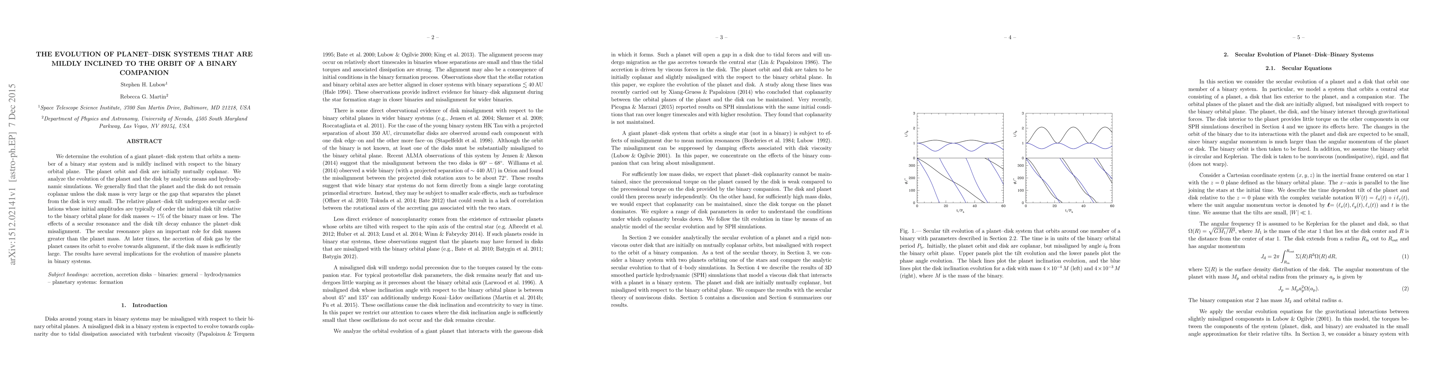 We determine the evolution of a giant planet-disk system that orbits a member of a binary star system and is mildly inclined with respect to the binary orbital plane. The planet orbit and disk are initially mutually coplanar. We analyze the evolution of the planet and the disk by analytic means and hydrodynamic simulations. We generally find that the planet and the disk do not remain coplanar unless the disk mass is very large or the gap that separates the planet from the disk is very small. The relative planet-disk tilt undergoes secular oscillations whose initial amplitudes are typically of order the initial disk tilt relative to the binary orbital plane for disk masses ~1% of the binary mass or less. The effects of a secular resonance and the disk tilt decay enhance the planet-disk misalignment. The secular resonance plays an important role for disk masses greater than the planet mass. At later times, the accretion of disk gas by the planet causes its orbit to evolve towards alignment, if the disk mass is sufficiently large. The results have several implications for the evolution of massive planets in binary systems.
