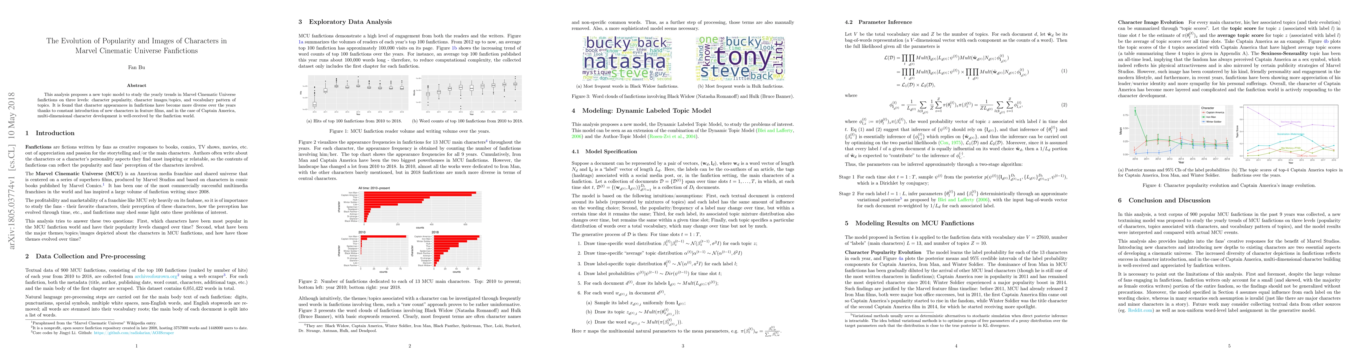 This analysis proposes a new topic model to study the yearly trends in Marvel Cinematic Universe fanfictions on three levels: character popularity, character images/topics, and vocabulary pattern of topics. It is found that character appearances in fanfictions have become more diverse over the years thanks to constant introduction of new characters in feature films, and in the case of Captain America, multi-dimensional character development is well-received by the fanfiction world.