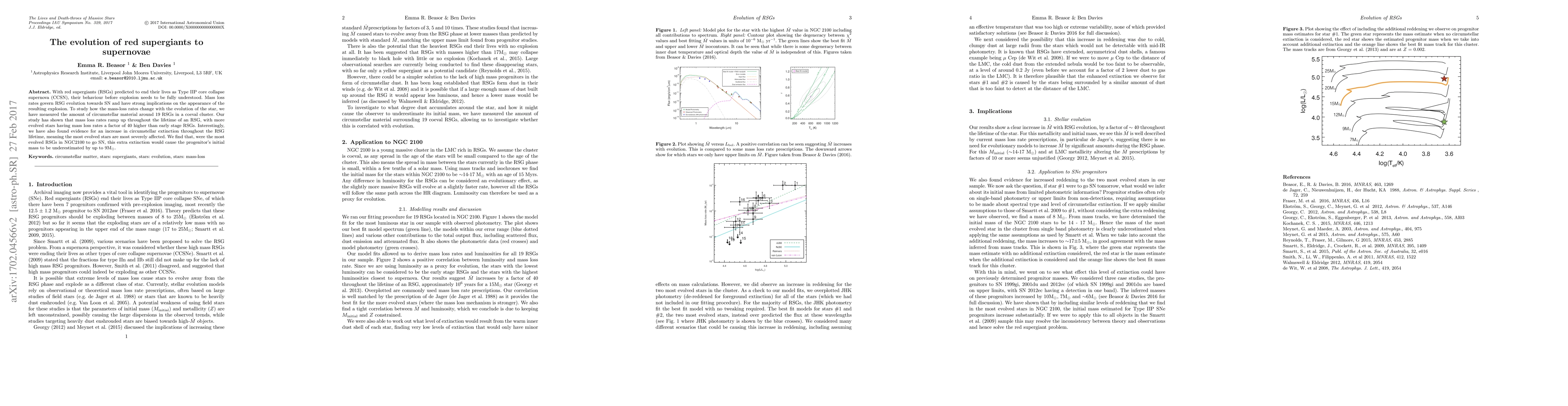 With red supergiants (RSGs) predicted to end their lives as Type IIP core collapse supernova (CCSN), their behaviour before explosion needs to be fully understood. Mass loss rates govern RSG evolution towards SN and have strong implications on the appearance of the resulting explosion. To study how the mass-loss rates change with the evolution of the star, we have measured the amount of circumstellar material around 19 RSGs in a coeval cluster. Our study has shown that mass loss rates ramp up throughout the lifetime of an RSG, with more evolved stars having mass loss rates a factor of 40 higher than early stage RSGs. Interestingly, we have also found evidence for an increase in circumstellar extinction throughout the RSG lifetime, meaning the most evolved stars are most severely affected. We find that, were the most evolved RSGs in NGC2100 to go SN, this extra extinction would cause the progenitor's initial mass to be underestimated by up to 9M$_\odot$.