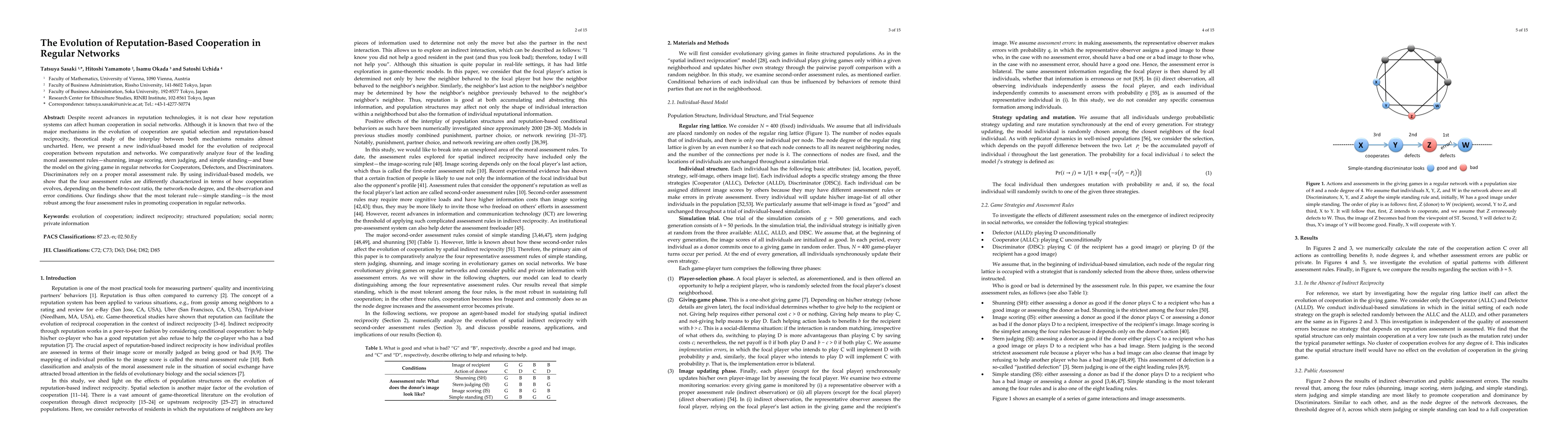 This paper explores the evolution of cooperation in regular networks using an individual-based model, comparing four moral assessment rules: shunning, image scoring, stern judging, and simple standing. It finds that the most tolerant rule, simple standing, is the most effective in promoting cooperation, depending on factors like benefit-to-cost ratio and network-node degree.