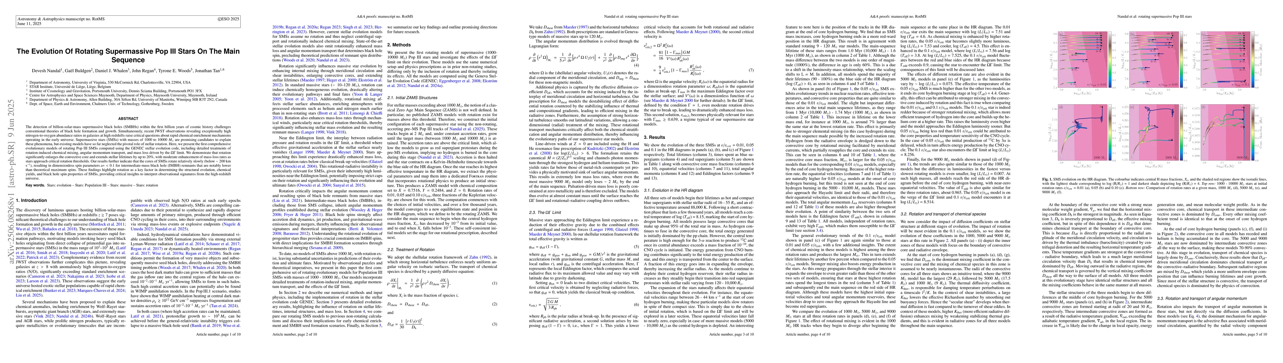 The detection of billion-solar-mass supermassive black holes (SMBHs) within the first billion years of cosmic history challenges conventional theories of black hole formation and growth. Simultaneously, recent JWST observations revealing exceptionally high nitrogen-to-oxygen abundance ratios in galaxies at high redshifts raise critical questions about rapid chemical enrichment mechanisms operating in the early universe. Supermassive stars (SMSs) with masses of 1000 to 10000 M$_{\odot}$ are promising candidates to explain these phenomena, but existing models have so far neglected the pivotal role of stellar rotation. Here, we present the first comprehensive evolutionary models of rotating Pop III SMSs computed using the GENEC stellar evolution code, including detailed treatments of rotation-induced chemical mixing, angular momentum transport, and mass loss driven by the $\Omega\Gamma$ limit. We demonstrate that rotation significantly enlarges the convective core and extends stellar lifetimes by up to 20%, with moderate enhancement of mass-loss rates as stars approach critical rotation thresholds. Our results further indicate that the cores of SMSs rotate relatively slowly (below $\sim 200$ km s$^{-1}$), resulting in dimensionless spin parameters $a* < 0.1$ for intermediate-mass black hole (IMBH) remnants that are notably lower than theoretical maximum spins. These findings highlight rotation as a key factor in determining the structural evolution, chemical yields, and black hole spin properties of SMSs, providing critical insights to interpret observational signatures from the high-redshift universe.