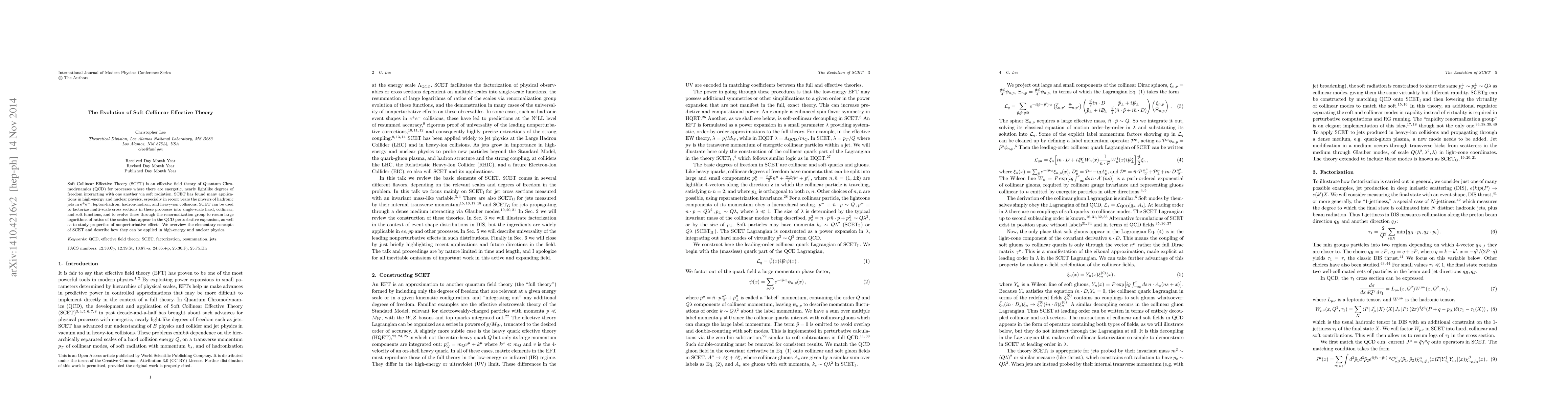Soft Collinear Effective Theory (SCET) is an effective field theory of Quantum Chromodynamics that helps factorize multi-scale cross sections into hard, collinear, and soft functions. It has been applied in high-energy physics to study hadronic jets in various collision processes.