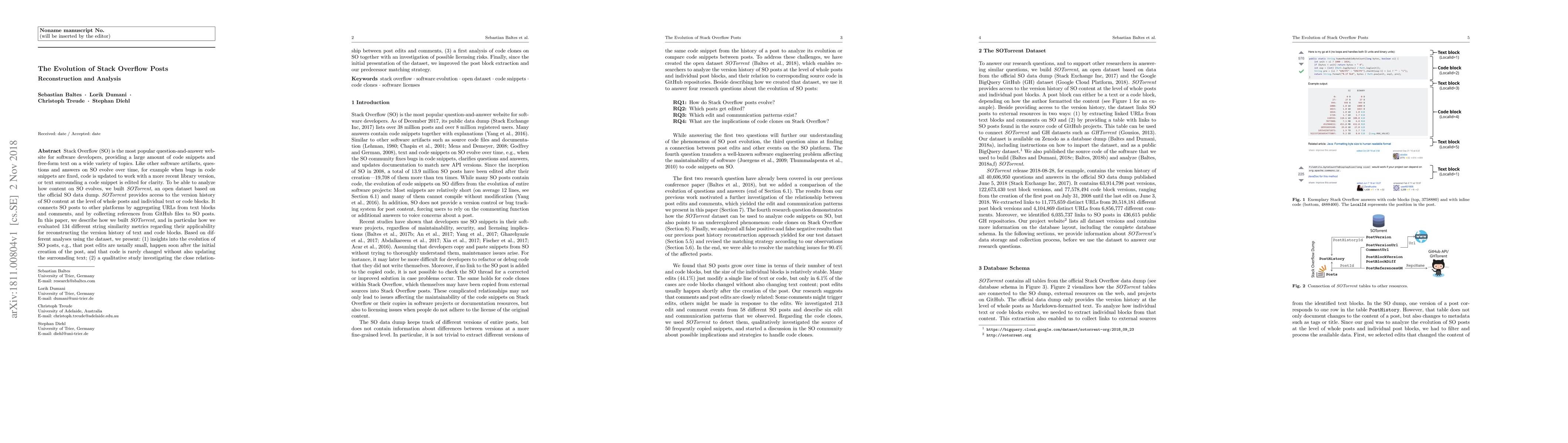 This paper details the construction of SOTorrent, an open dataset capturing the version history of Stack Overflow posts, and evaluates 134 string similarity metrics for reconstructing text and code block evolution. The study reveals insights into the nature of SO post edits, the correlation between edits and comments, and potential licensing risks associated with code clones.