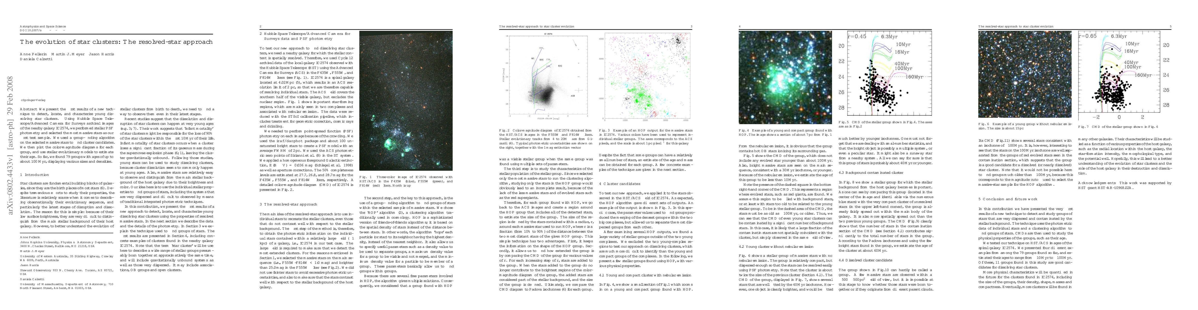 We present the first results of a new technique to detect, locate, and characterize young dissolving star clusters. Using HST/ACS archival images of the nearby galaxy IC2574, we performed stellar PSF photometry and selected the most massive stars as our first test sample. We used a group-finding algorithm on the selected massive stars to find cluster candidates. We then plot the color-magnitude diagrams for each group, and use stellar evolutionary models to estimate their age. So far, we found 79 groups with ages of up to about 100 Myr, displaying various sizes and densities.
