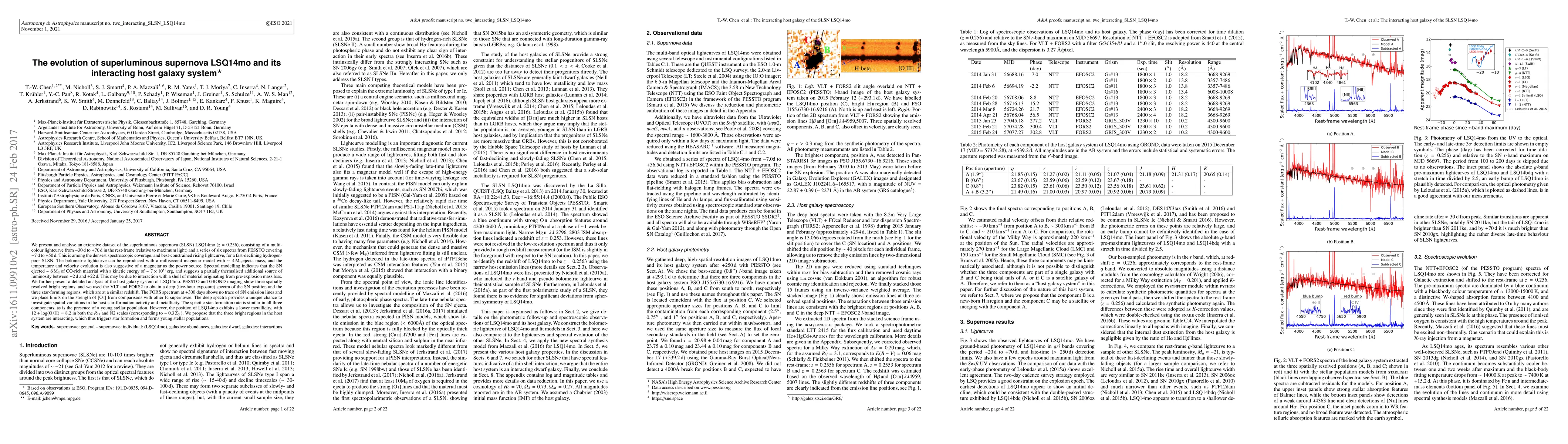 We present and analyse an extensive dataset of the superluminous supernova (SLSN) LSQ14mo (z = 0.256), consisting of a multi-colour lightcurve from -30 d to +70 d in the rest-frame and a series of 6 spectra from PESSTO covering -7 d to +50 d. This is among the densest spectroscopic coverage, and best-constrained rising lightcurve, for a fast-declining hydrogen-poor SLSN. The bolometric lightcurve can be reproduced with a millisecond magnetar model with ~ 4 M_sol ejecta mass, and the temperature and velocity evolution is also suggestive of a magnetar as the power source. Spectral modelling indicates that the SN ejected ~ 6 M_sol of CO-rich material with a kinetic energy of ~ 7 x 10^51 erg, and suggests a partially thermalised additional source of luminosity between -2 d and +22 d. This may be due to interaction with a shell of material originating from pre-explosion mass loss. We further present a detailed analysis of the host galaxy system of LSQ14mo. PESSTO and GROND imaging show three spatially resolved bright regions, and we used the VLT and FORS2 to obtain a deep (five-hour exposure) spectra of the SN position and the three star-forming regions, which are at a similar redshift. The FORS spectrum at +300 days shows no trace of SN emission lines and we place limits on the strength of [O I] from comparisons with other Ic SNe. The deep spectra provides a unique chance to investigate spatial variations in the host star-formation activity and metallicity. The specific star-formation rate is similar in all three components, as is the presence of a young stellar population. However, the position of LSQ14mo exhibits a lower metallicity, with 12 + log(O/H) = 8.2 in both the R23 and N2 scales (corresponding to ~ 0.3 Z_sol). We propose that the three bright regions in the host system are interacting, which thus triggers star-formation and forms young stellar populations.