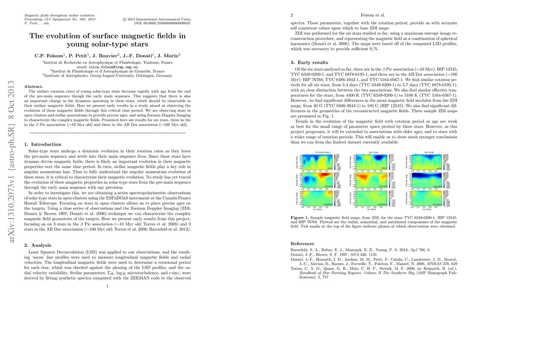 Young solar-type stars' surface magnetic fields evolve with age, changing dramatically between 10-100 million years old.