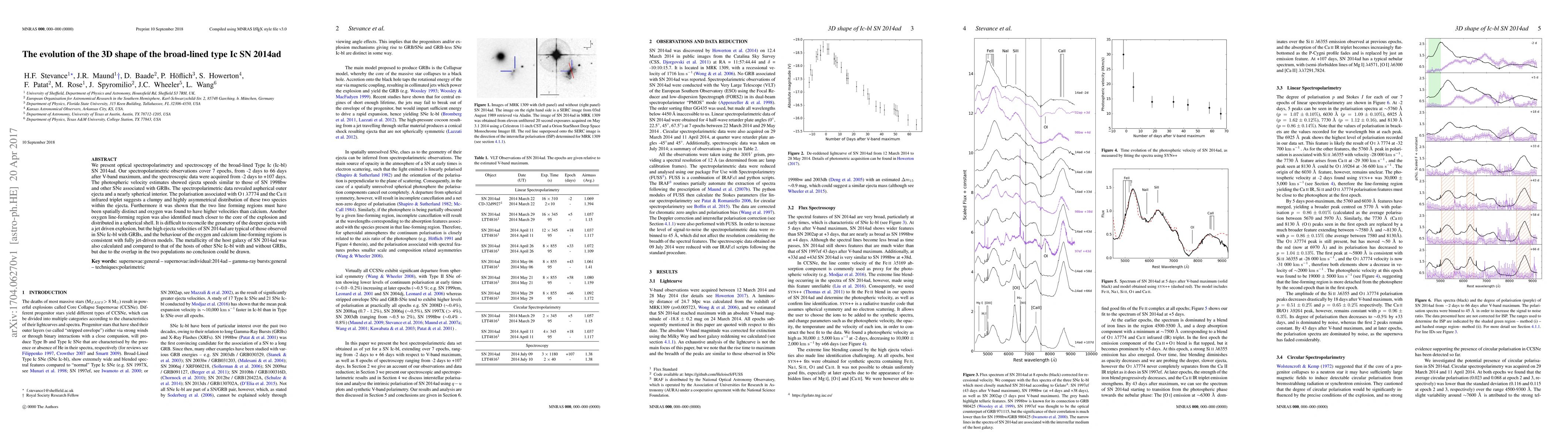 The study presents a comprehensive analysis of spectropolarimetric and spectroscopic data, revealing detailed information about the asymmetry and velocity distribution in SN 2014ad.