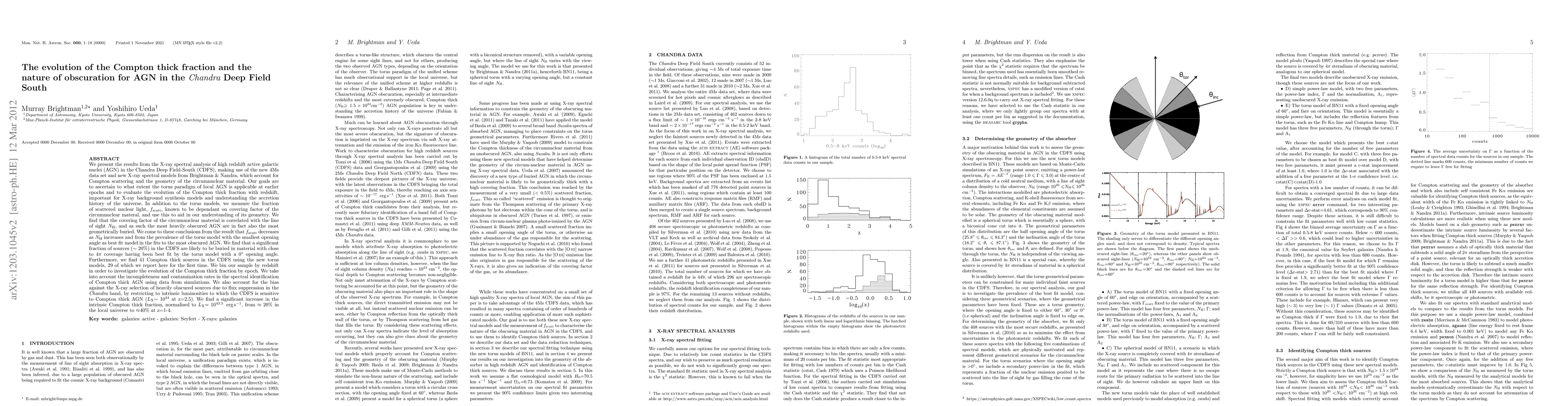 (Abridged) We present the results from the X-ray spectral analysis of high-z AGN in the CDFS, making use of the new 4Ms data set and new X-ray spectral models from Brightman & Nandra, which account for Compton scattering and the geometry of the circumnuclear material. Our goals are to ascertain to what extent the torus paradigm of local AGN is applicable at earlier epochs and to evaluate the evolution of the Compton thick fraction (f_CT) with z, important for XRB synthesis models and understanding the accretion history of the universe. In addition to the torus models, we measure the fraction of scattered nuclear light, f_scatt known to be dependant on covering factor of the circumnuclear materal, and use this to aid in our understanding of its geometry. We find that the covering factor of the circumnuclear material is correlated with NH, and as such the most heavily obscured AGN are in fact also the most geometrically buried. We come to these conclusions from the result that f_scatt decreases as NH increases and from the prevalence of the torus model with the smallest opening angle as best fit model in the fits to the most obscured AGN. We find that a significant fraction of sources (~ 20%) in the CDFS are likely to be buried in material with close to 4 pi coverage having been best fit by the torus model with a 0\degree opening angle. Furthermore, we find 41 CTAGN in the CDFS using the new torus models, 29 of which we report here for the first time. We bin our sample by z in order to investigate the evolution of f_CT. Once we have accounted for biases and incompleteness we find a significant increase in the intrinsic f_CT, normalised to LX= 10^43.5 erg/s, from \approx 20% in the local universe to \approx 40% at z=1-4.