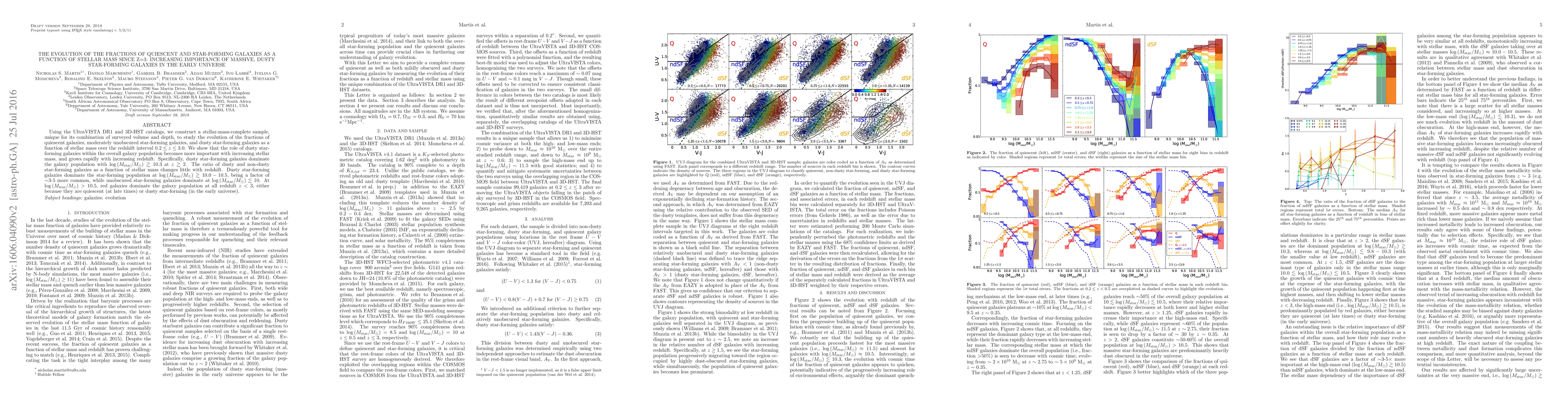 This paper examines the evolution of galaxy fractions in terms of quiescent, moderately star-forming, and dusty star-forming galaxies across stellar mass and redshift ($0.2 \le z \le 3.0$). It finds that dusty star-forming galaxies become increasingly dominant among massive galaxies, especially at higher redshifts.