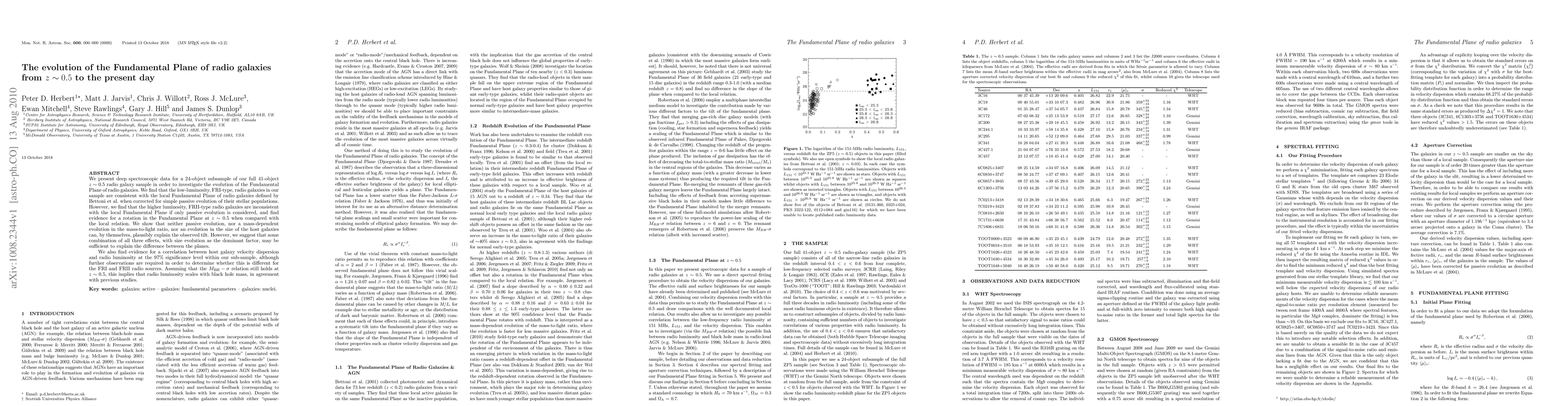 This paper investigates the evolution of the Fundamental Plane of radio galaxies from z~0.5 to the present day using deep spectroscopic data. It finds that low-luminosity, FRI-type radio galaxies align with the local Fundamental Plane after passive evolution correction, while higher luminosity, FRII-type radio galaxies exhibit a rotation in the plane at z~0.5, suggesting a combination of passive evolution, mass-to-light ratio changes, and size evolution may explain this discrepancy.