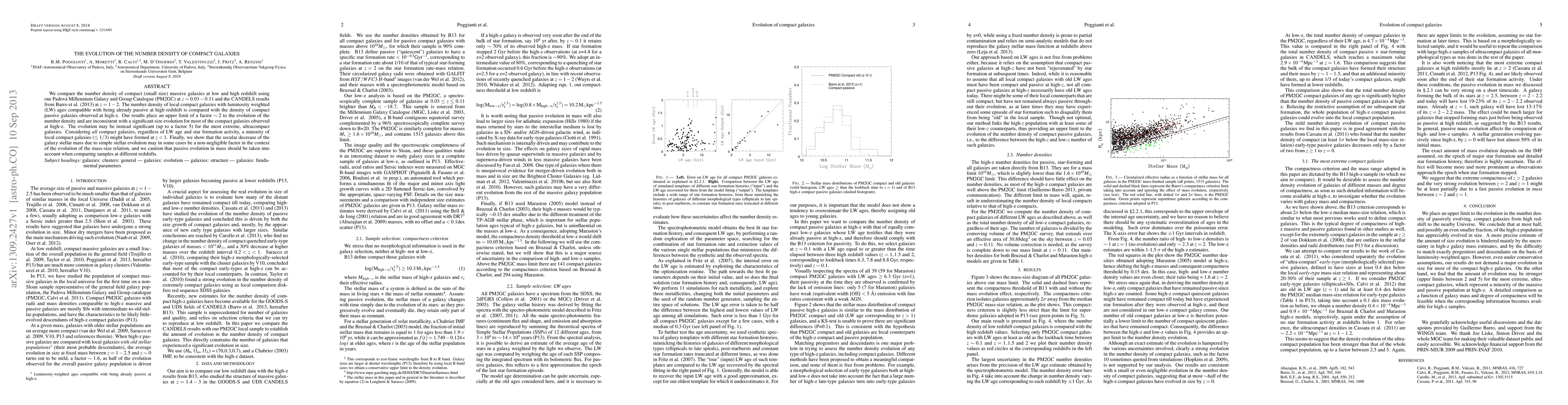 The study compares the number density of compact galaxies at low and high redshift, finding that their evolution is limited to a factor of 2, with only a minority (<1/3) formed before z=1.