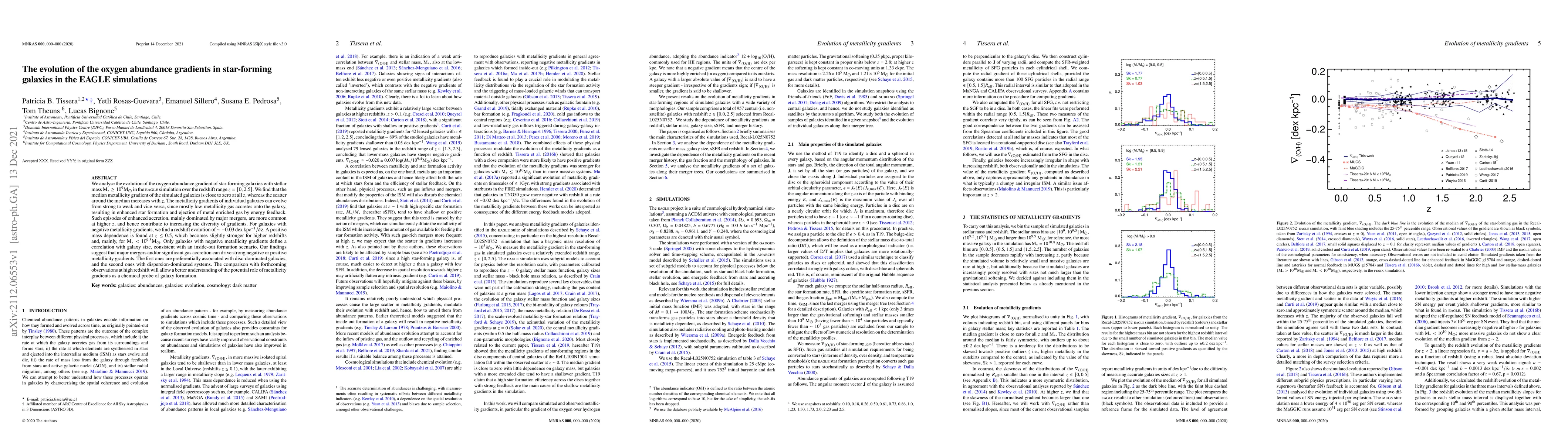 This paper examines the evolution of oxygen abundance gradients in star-forming galaxies in the EAGLE simulation, revealing that median metallicity gradients are near zero but scatter increases with redshift. Major mergers and gas accretion events drive the diversity in metallicity gradients, with negative gradients linked to disc-dominated galaxies and positive to dispersion-dominated systems.
