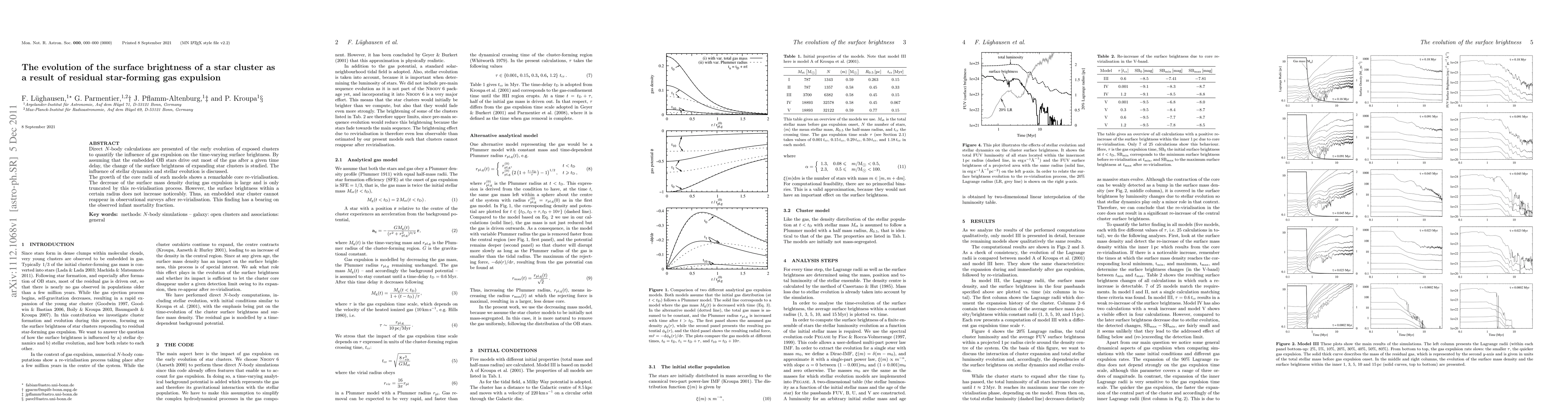 Direct N-body calculations are presented of the early evolution of exposed clusters to quantify the influence of gas expulsion on the time-varying surface brightness. By assuming that the embedded OB stars drive out most of the gas after a given time delay, the change of the surface brightness of expanding star clusters is studied. The influence of stellar dynamics and stellar evolution is discussed. The growth of the core radii of such models shows a remarkable core re-virialisation. The decrease of the surface mass density during gas expulsion is large and is only truncated by this re-virialisation process. However, the surface brightness within a certain radius does not increase noticeably. Thus, an embedded star cluster cannot reappear in observational surveys after re-virialisation. This finding has a bearing on the observed infant mortality fraction.