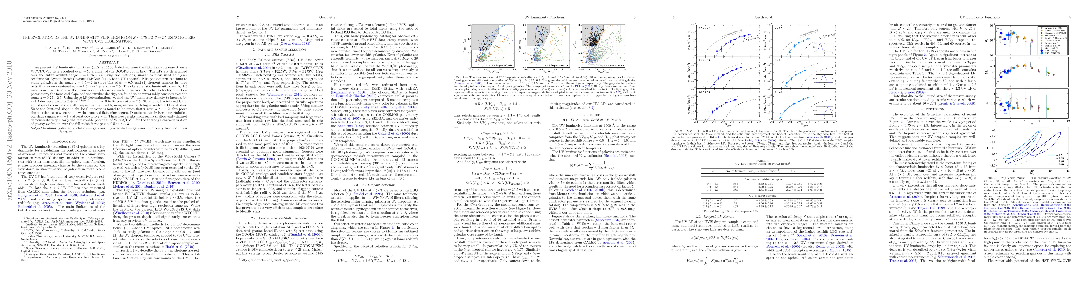 This paper presents UV luminosity functions (LFs) derived from HST ERS WFC3/UVIS data in the GOODS-South field, showing a ~1.5 mag dimming in characteristic luminosity from z=2.5 to z=0.75. Despite this, the faint-end slope and number density remain constant, indicating a complex evolution pattern in galaxy UV luminosity.