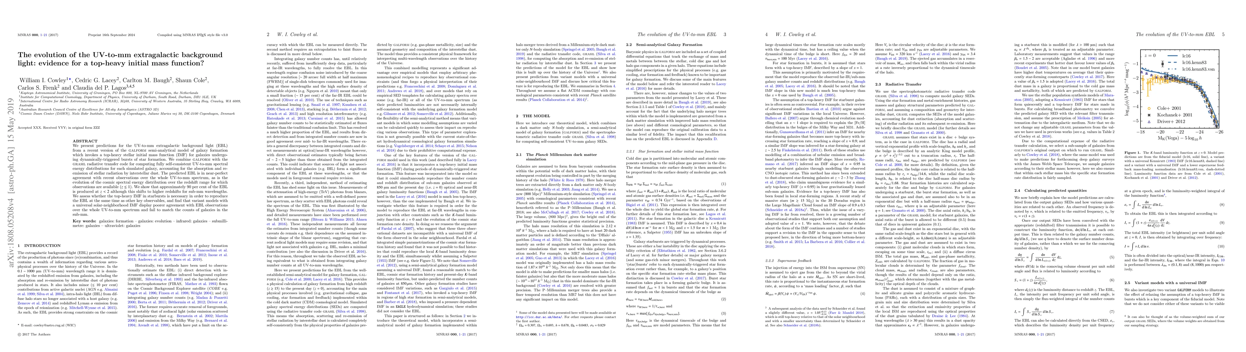 We present predictions for the UV-to-mm extragalactic background light (EBL) from a recent version of the GALFORM semi-analytical model of galaxy formation which invokes a top-heavy stellar initial mass function (IMF) for galaxies undergoing dynamically-triggered bursts of star formation. We combine GALFORM with the GRASIL radiative transfer code for computing fully self-consistent UV-to-mm spectral energy distributions for each simulated galaxy, accounting for the absorption and re-emission of stellar radiation by interstellar dust. The predicted EBL is in near-perfect agreement with recent observations over the whole UV-to-mm spectrum, as is the evolution of the cosmic spectral energy distribution over the redshift range for which observations are available ($z\lesssim1$). We show that approximately 90~per~cent of the EBL is produced at $z<2$ although this shifts to higher redshifts for sub-mm wavelengths. We assess whether the top-heavy IMF in starbursts is necessary in order to reproduce the EBL at the same time as other key observables, and find that variant models with a universal solar-neighborhood IMF display poorer agreement with EBL observations over the whole UV-to-mm spectrum and fail to match the counts of galaxies in the sub-mm.