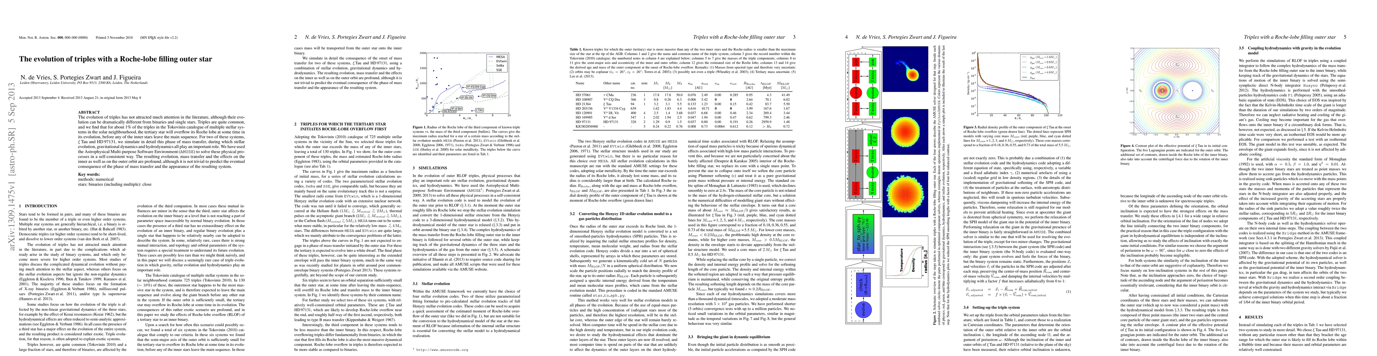 The evolution of triples has not attracted much attention in the literature, although their evolution can be dramatically different from binaries and single stars. Triples are quite common, and we find that for about 1% of the triples in the Tokovinin catalogue of multiple stellar systems in the solar neighbourhood, the tertiary star will overflow its Roche lobe at some time in its evolution, before any of the inner stars leave the main sequence. For two of these systems, Xi Tauri and HD97131 we simulate in detail this phase of mass transfer, during which stellar evolution, gravitational dynamics and hydrodynamics all play an important role. We have used the Astrophysical Multi-purpose Software Environment (AMUSE) to solve these physical processes in a self-consistent way. The resulting evolution, mass transfer and the effects on the inner as well as on the outer orbit are profound, although it is not trivial to predict the eventual consequence of the phase of mass transfer and the appearance of the resulting system.