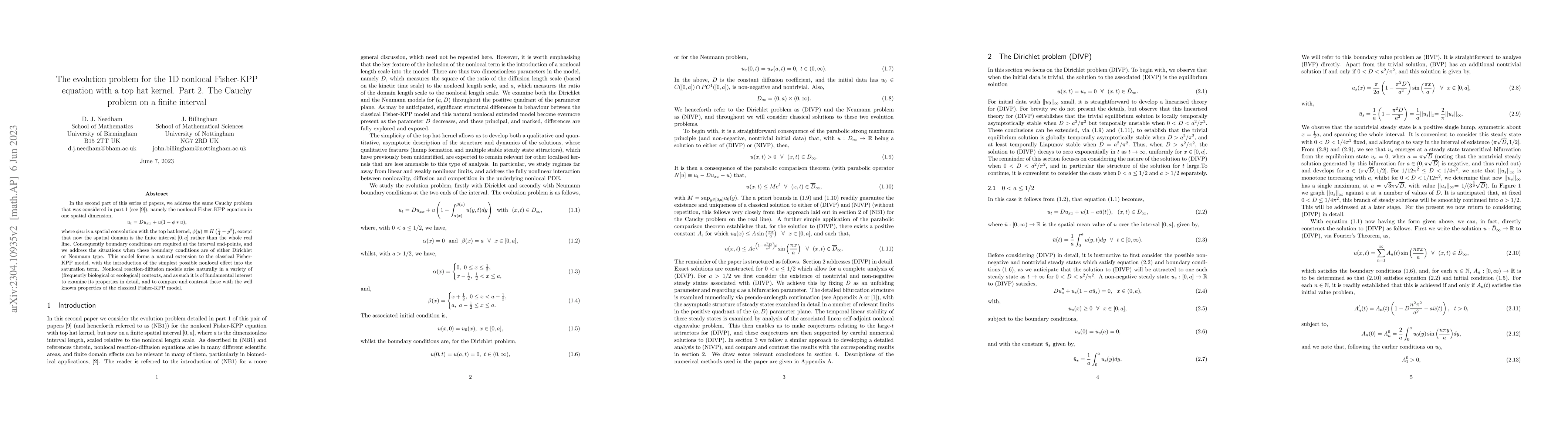In the second part of this series of papers, we address the same Cauchy problem that was considered in part 1, namely the nonlocal Fisher-KPP equation in one spatial dimension, \[ u_t = D u_{xx} + u(1-\phi*u), \] where $\phi*u$ is a spatial convolution with the top hat kernel, $\phi(y) \equiv H\left(\frac{1}{4}-y^2\right)$, except that now the spatial domain is the finite interval $[0,a]$ rather than the whole real line. Consequently boundary conditions are required at the interval end-points, and we address the situations when these boundary conditions are of either Dirichlet or Neumann type. This model forms a natural extension to the classical Fisher-KPP model, with the introduction of the simplest possible nonlocal effect into the saturation term. Nonlocal reaction-diffusion models arise naturally in a variety of (frequently biological or ecological) contexts, and as such it is of fundamental interest to examine its properties in detail, and to compare and contrast these with the well known properties of the classical Fisher-KPP model.