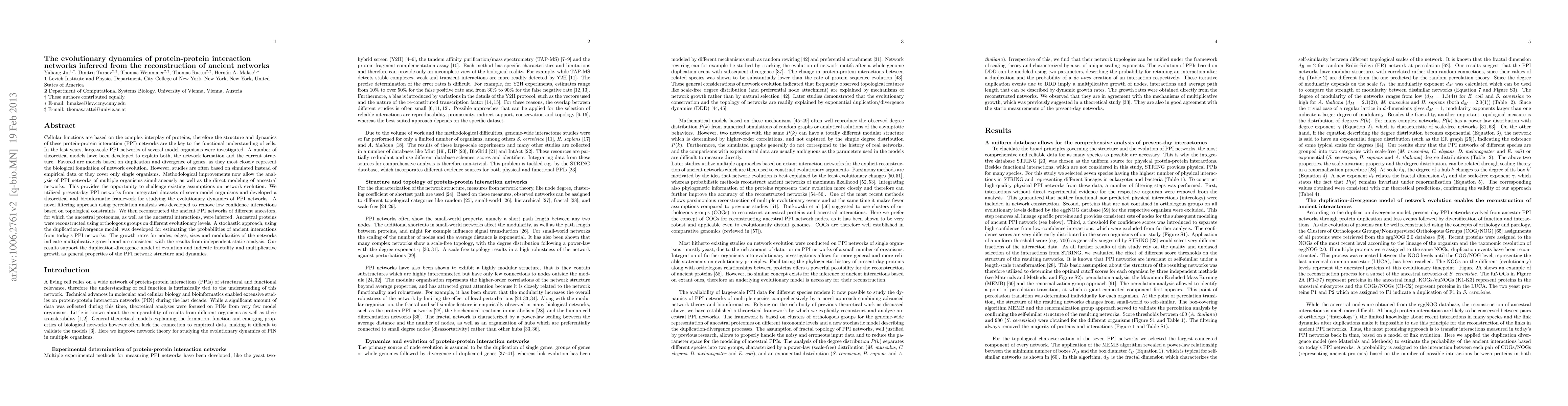 This paper explores the evolutionary dynamics of protein-protein interaction (PPI) networks using a novel bioinformatic framework and a filtering approach based on percolation analysis. The study reconstructs ancient PPI networks and supports the duplication-divergence model, revealing fractality and multiplicative growth in network evolution.