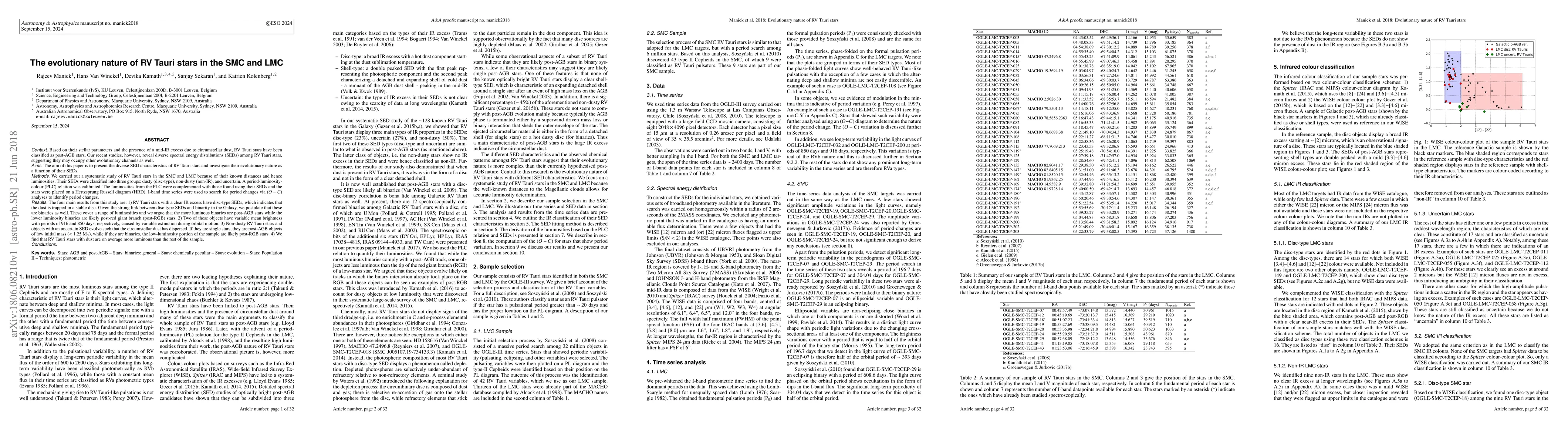 This paper investigates the evolutionary nature of RV Tauri stars in the SMC and LMC, revealing diverse spectral energy distributions (SEDs) suggesting varied evolutionary paths. The study categorizes stars into dusty, non-dusty, and uncertain SED types, finding that luminous dusty stars likely represent post-AGB binaries, while non-dusty stars may be low-mass post-AGB or post-RGB stars.