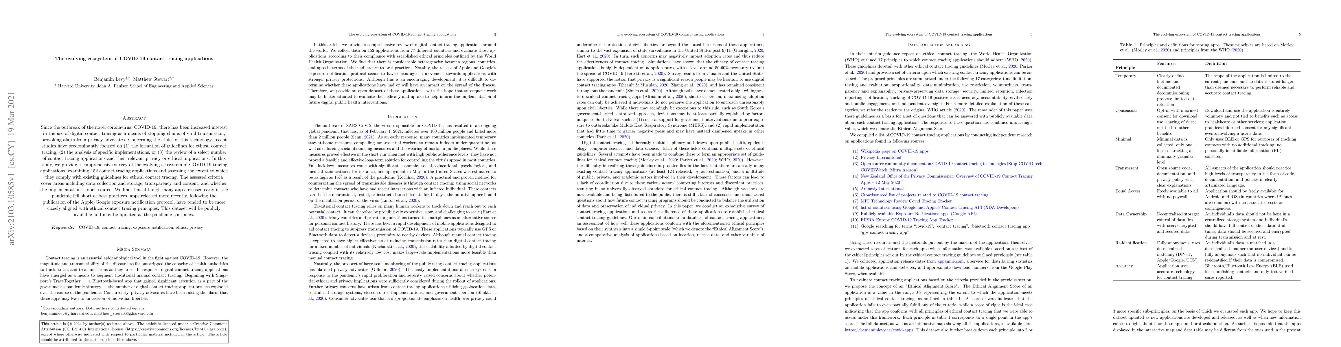 Since the outbreak of the novel coronavirus, COVID-19, there has been increased interest in the use of digital contact tracing as a means of stopping chains of viral transmission, provoking alarm from privacy advocates. Concerning the ethics of this technology, recent studies have predominantly focused on (1) the formation of guidelines for ethical contact tracing, (2) the analysis of specific implementations, or (3) the review of a select number of contact tracing applications and their relevant privacy or ethical implications. In this study, we provide a comprehensive survey of the evolving ecosystem of COVID-19 tracing applications, examining 152 contact tracing applications and assessing the extent to which they comply with existing guidelines for ethical contact tracing. The assessed criteria cover areas including data collection and storage, transparency and consent, and whether the implementation is open source. We find that although many apps released early in the pandemic fell short of best practices, apps released more recently, following the publication of the Apple/Google exposure notification protocol, have tended to be more closely aligned with ethical contact tracing principles. This dataset will be publicly available and may be updated as the pandemic continues.