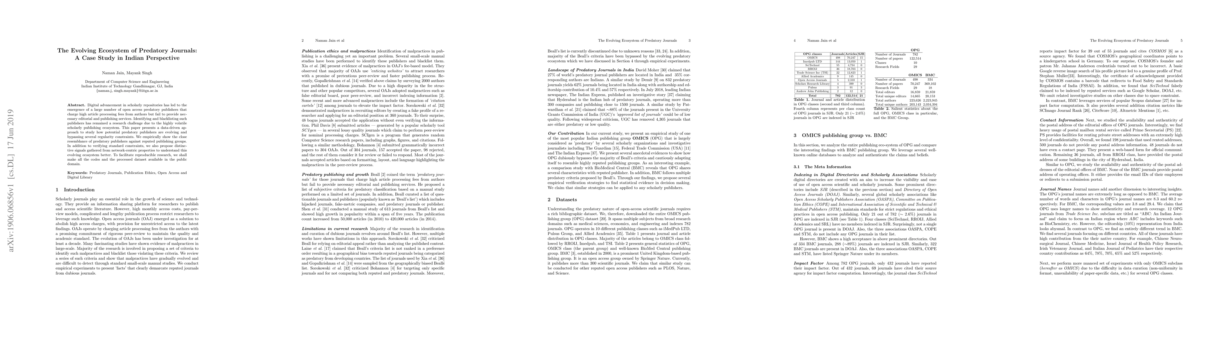 This paper investigates the rise of predatory journals in India, employing a data-driven approach to identify how these publishers mimic reputable groups while evading standard editorial and publishing norms. The study proposes additional network-centric signals to better understand the evolving ecosystem of predatory publishing.