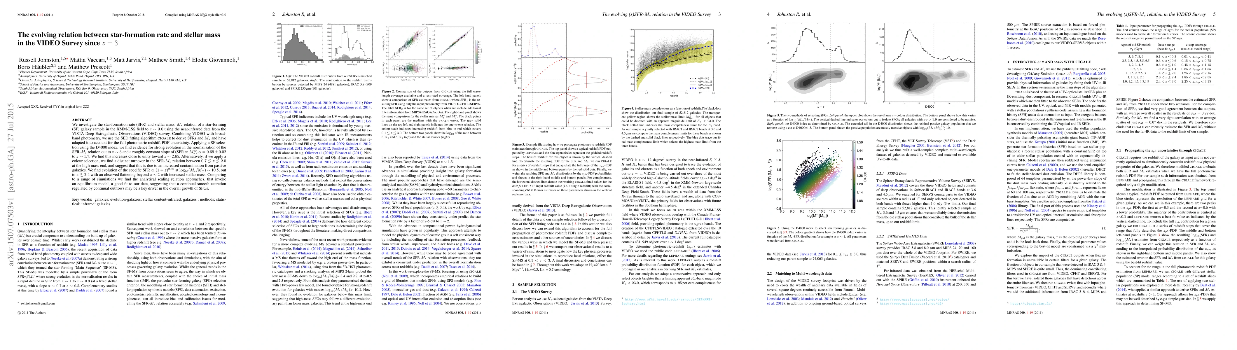 This study investigates the star-formation rate and stellar mass relation in star-forming galaxies up to $z\sim3$ using the VIDEO survey data. The analysis reveals a strong evolution in the normalization of the SFR-$M_*$ relation, with a nearly constant slope up to $z\sim1.7$, suggesting a smooth accretion regulated by outflows as a key driver for galaxy growth.