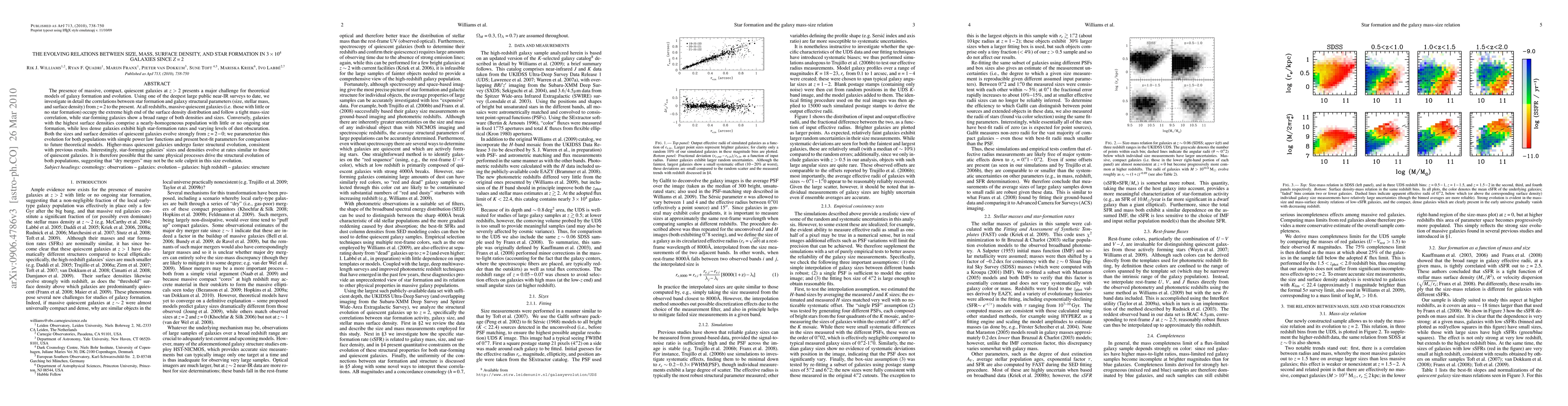 This study investigates the relationships between size, mass, surface density, and star formation in 3x10^4 galaxies from z=2 to the present, revealing that massive, quiescent galaxies exhibit tight mass-size correlations and low star formation rates, while star-forming galaxies show a wide range of densities and sizes. The structural evolution of both populations is driven by similar physical processes, suggesting that "dry mergers" may not solely account for size changes.