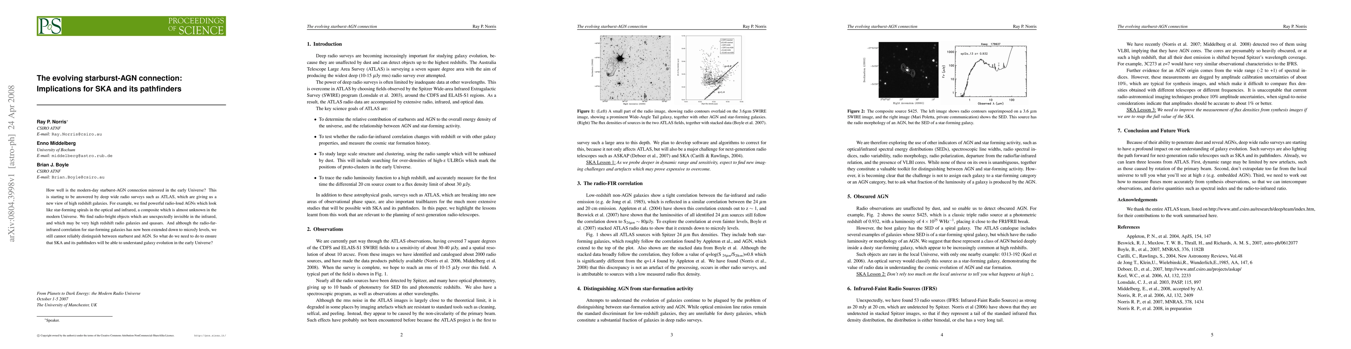 How well is the modern-day starburst-AGN connection mirrored in the early Universe? This is starting to be answered by deep wide radio surveys such as ATLAS, which are giving us a new view of high redshift galaxies. For example, we find powerful radio-loud AGNs which look like star-forming spirals in the optical and infrared, a composite which is almost unknown in the modern Universe. We find radio-bright objects which are unexpectedly invisible in the infrared, and which may be very high redshift radio galaxies and quasars. And although the radio-far-infrared correlation for star-forming galaxies has now been extended down to microJy levels, we still cannot reliably distinguish between starburst and AGN. So what do we need to do to ensure that SKA and its pathfinders will be able to understand galaxy evolution in the early Universe?