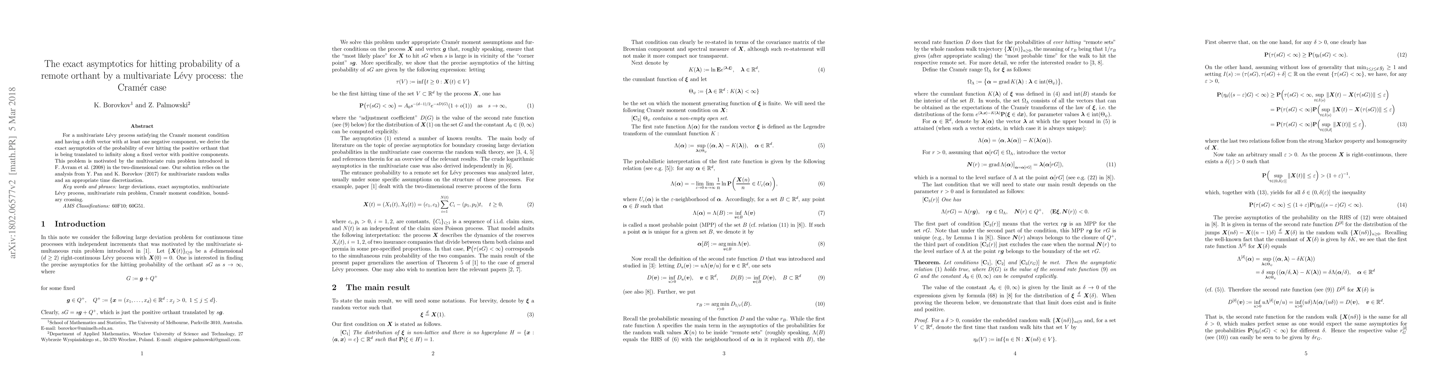 This paper derives the exact asymptotic behavior of the probability that a multivariate Lévy process, under the Cramér moment condition, will eventually hit a remote positive orthant. The findings are motivated by the multivariate ruin problem and build on prior work on multivariate random walks.
